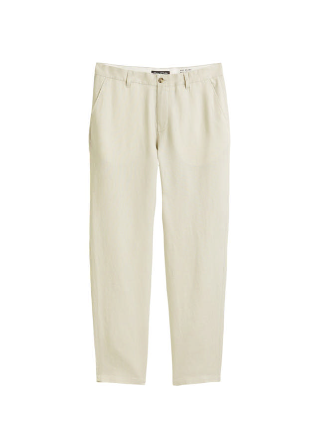 Belsbo buxur, úr hreinu hör Fjölhæfur og þægilegur stíll: Belsbo buxurnar eru með afslöppuðu sniði og mjókkandi skálmum. Klassískt mitti með smellulokun og beltisslaufum tryggir hreint og ... Sjá nánar