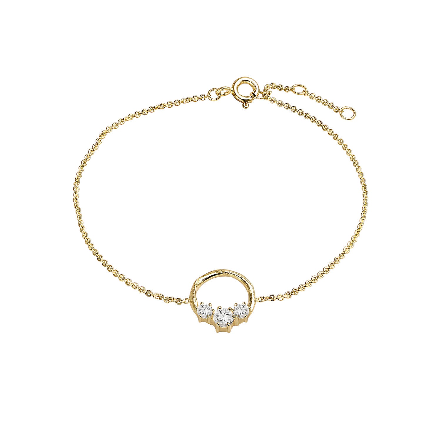 Þetta armband er hluti af skartgripalínunni Gárur frá Jens. Armbandið er handsmíðað úr 14 karata gulli og er skreytt þremur cubic zirkonia steinum. Lengd armbandsins er stillanleg.  Hönnuður ... Sjá nánar