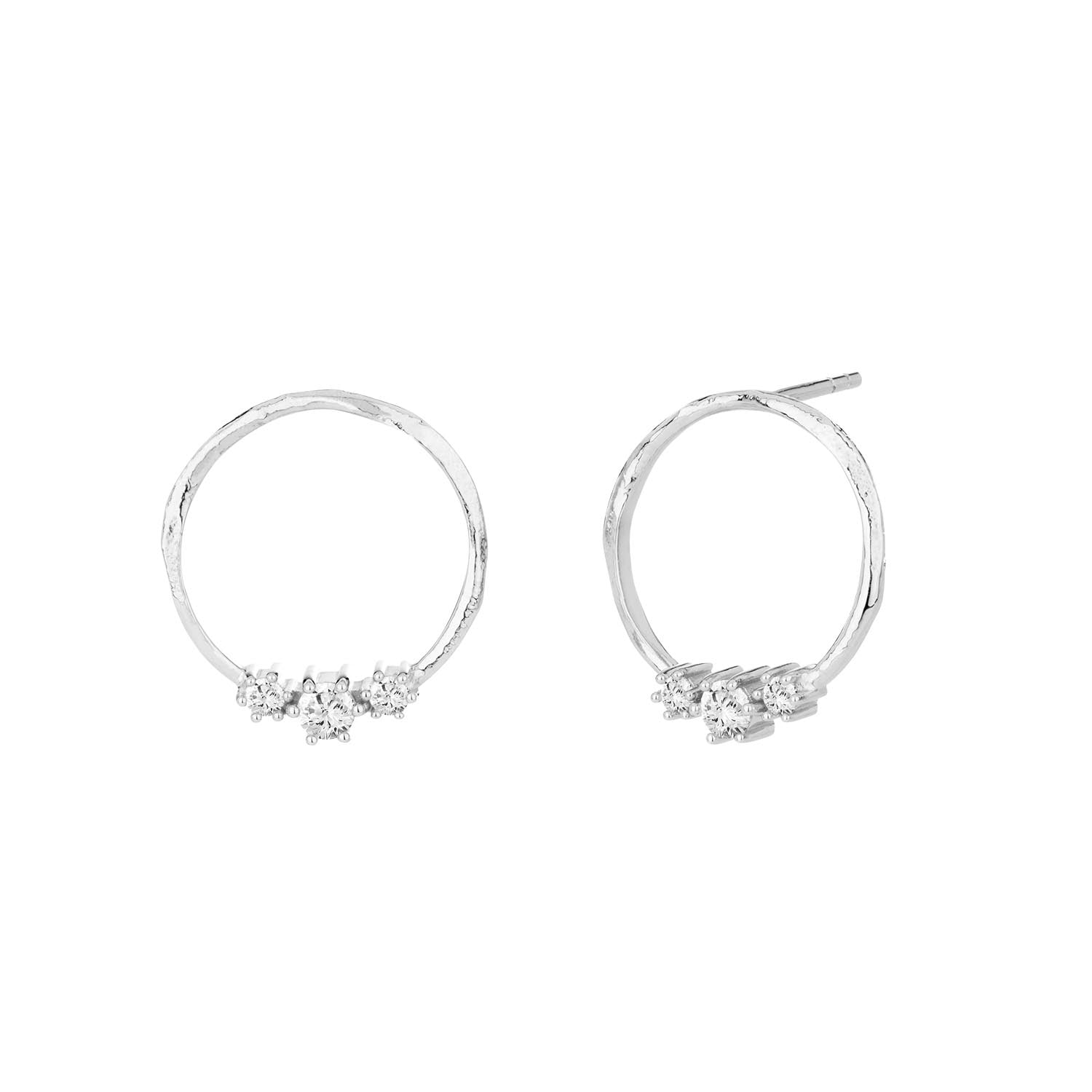 Eyrnalokkarnir eru í Gárulínu jens. Lokkarnir eru handsmíðaðir rhodiumhúðuðu silfri með cubic zirconia steinum. Þvermál lokkanna er um  18  mm eða stærð Medium.  Hönnuður og smiður er ... Sjá nánar