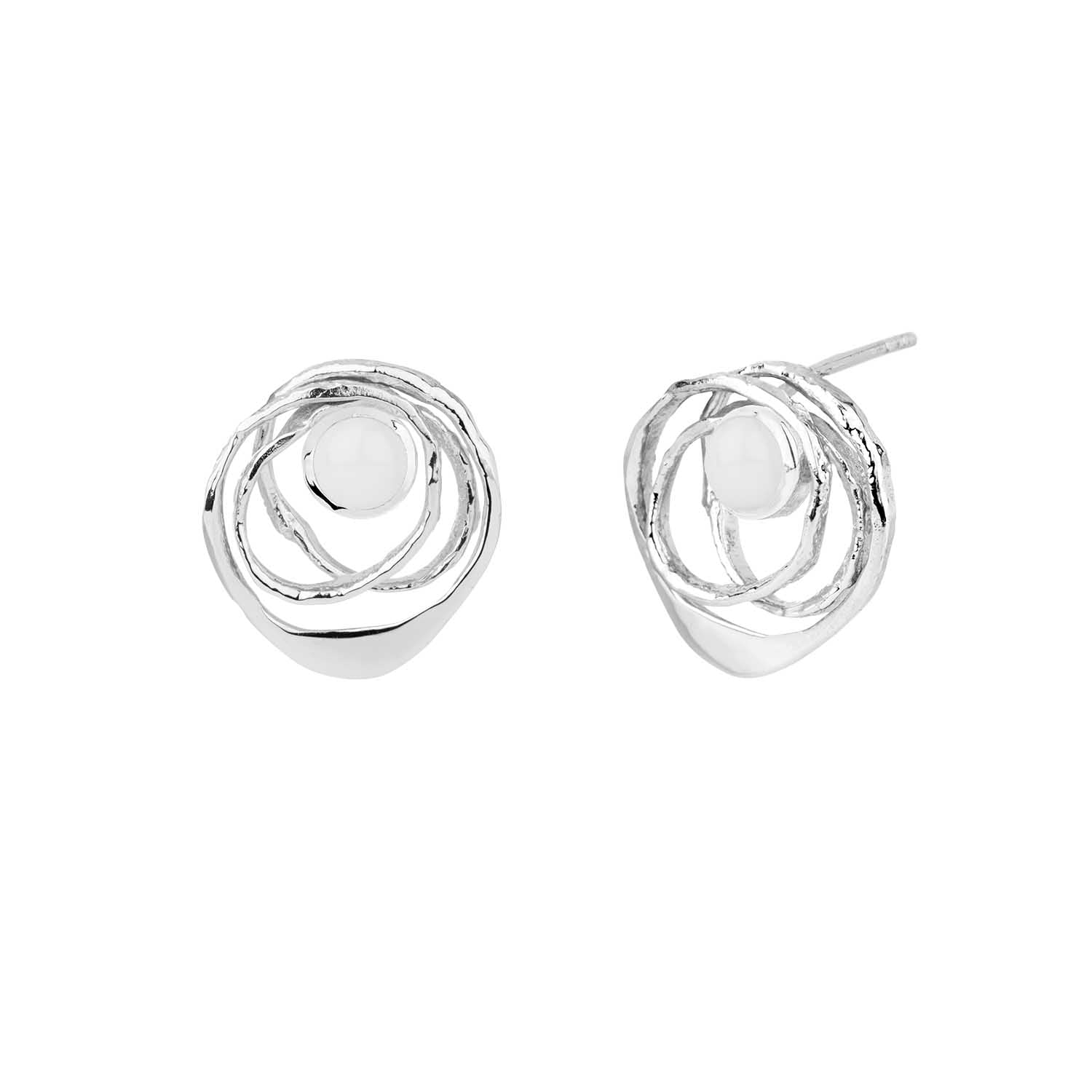 Eyrnalokkarnir eru handsmíðaðir úr rhodiumhúðuðu silfri með íslenskum kalsidon steinum. Hönnuðir og smiðir eru Berglind Snorra og Jón Snorri Sigurðsson.