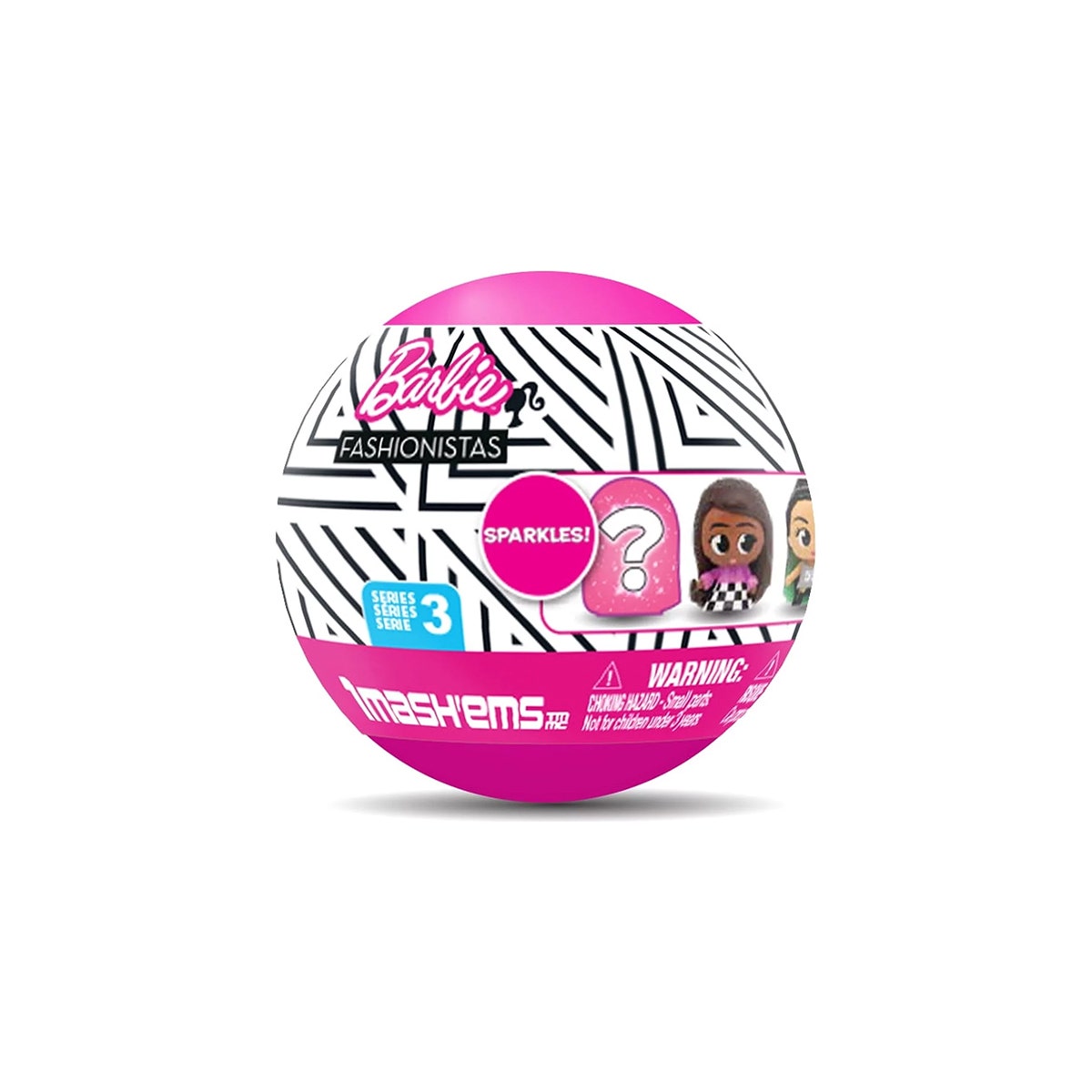 Í kúlunni leynist Mash'ems Barbie Fashionista fígúra.