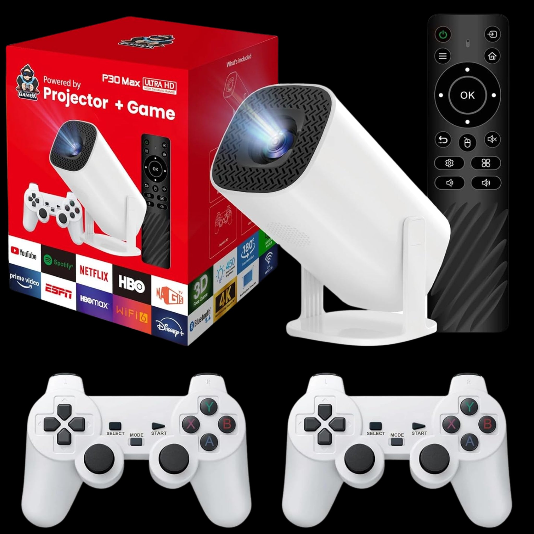 Breyttu herberginu í leikjasal! PMAX er meira en bara skjávarpi – hann er líka  leikjatölva með mörg þúsund innbyggðum retro leikjum og tveimur þráðlausum fjarstýringum til að spila alla ... Sjá nánar