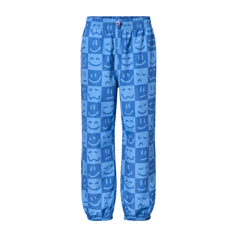 Mynstraðar vindbuxur frá Molo með teygju í mittið. 5.000mm vatnsheldni og 5.000g/m2/24klst öndun. 100% polyester.