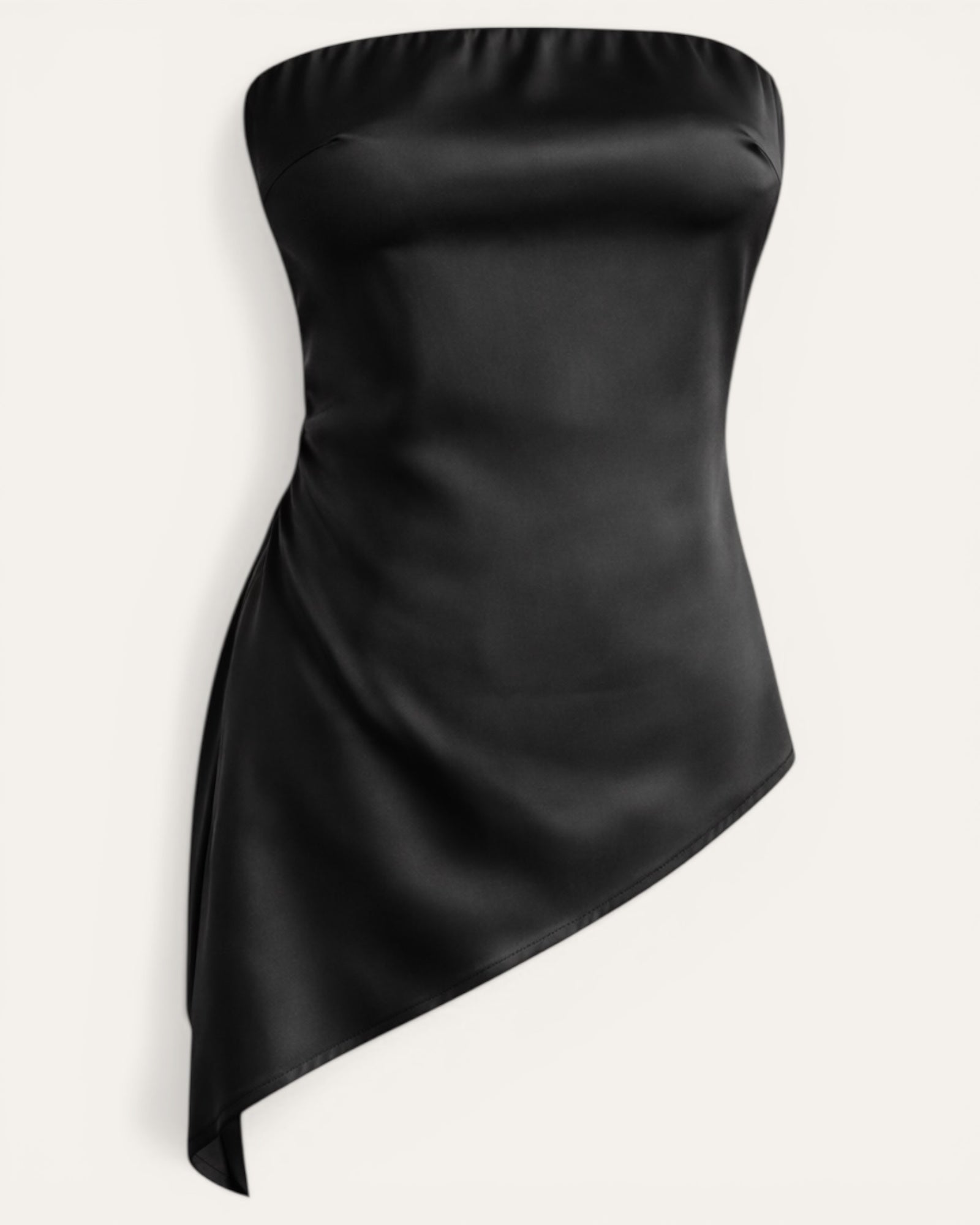 Satin Strapless Toppur Glæsilegur satin toppur sem gefur outfitinu strax fágað og kvenlegt útlit. Toppurinn er strapless með fallegu, ósamhverfu sniði að neðan sem fellur mjúklega niður og ... Sjá nánar