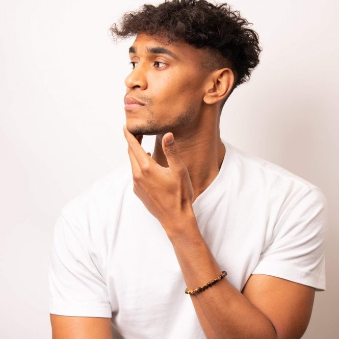 FRED BENNETT - Armband B5427Y Herra armband frá Fred Bennett með TIGER EYE steinum og með gullhúðum stál lás.  Gullhúðað stál  Tiger Eye 22 cm