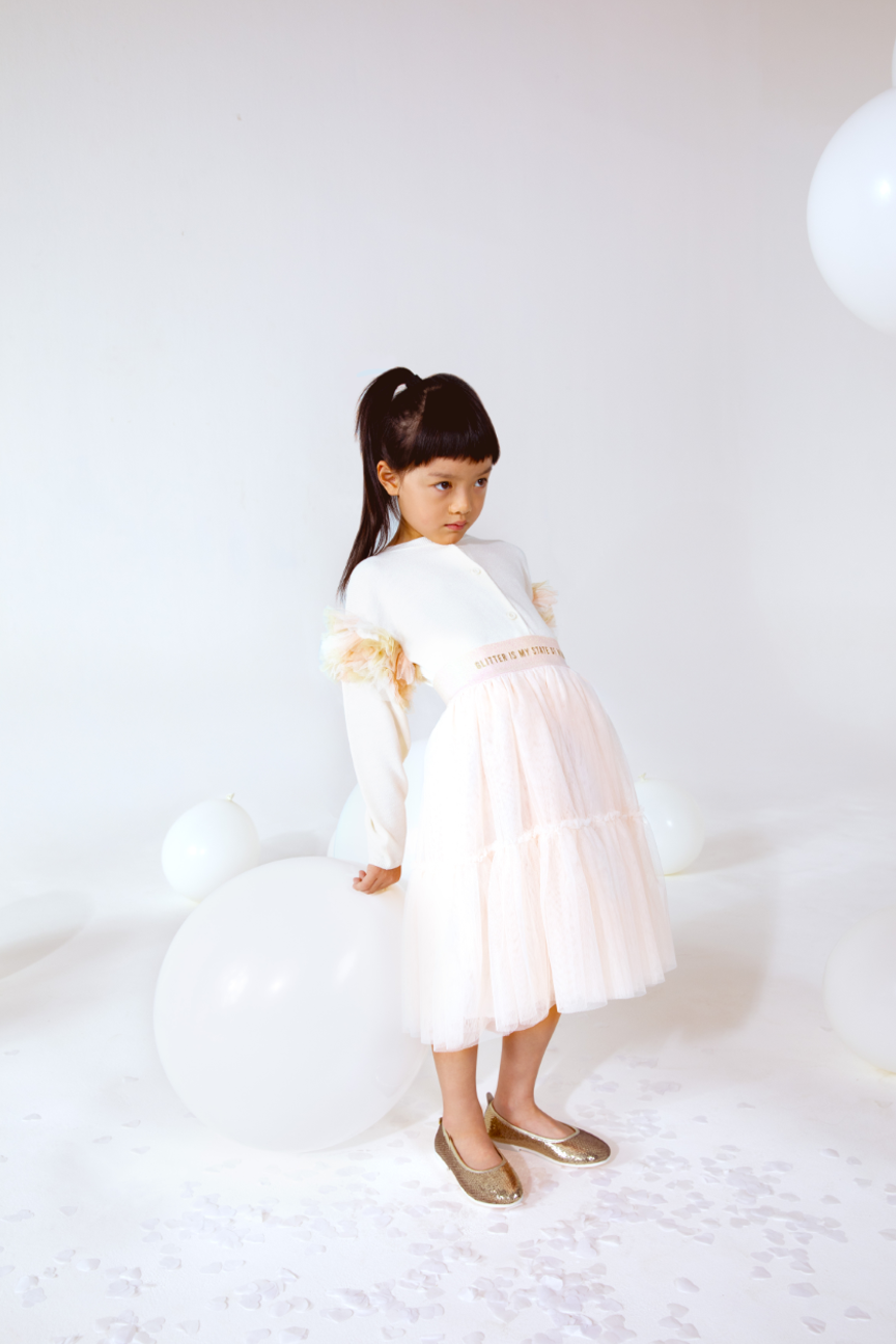 Ljósbleikt, sítt tjull pils frá Billieblush með teygju í mittið.