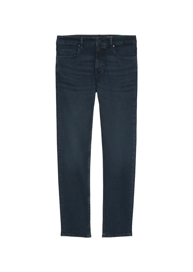 Sjöbo Shaped dökkbláar gallabuxur og klassískt fimm vasa snið. Stungnir saumar á afturvösum, hliðarvösum og myntvasa. Lágt mitti gerir þær herralegri, skálmar þröngar niður í venjulegri sídd. ... Sjá nánar