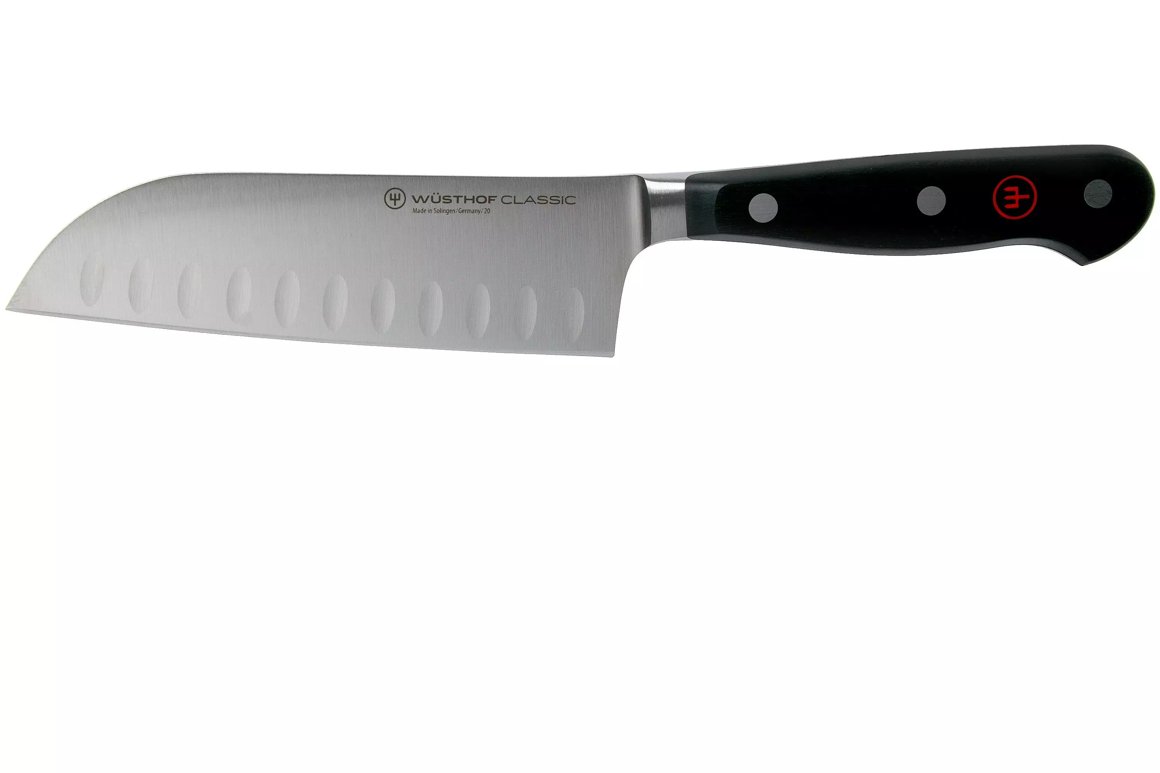 Classic Santoku hnífur loftun14cm Efni: ryðfrítt stál Lengd á hnífsblaði: 14cm Classic línan frá Wusthof: Sterkir, beittir og hagnýtir - klassíska eldhúsverkfærið Stálið er pressað úr einu ... Sjá nánar