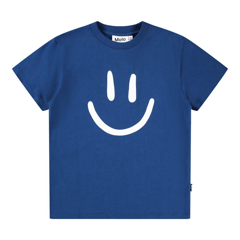Blár stuttermabolur frá Molo með broskalli að framan. 100% bómull.