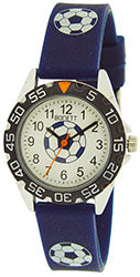 Bonett barnaúr Vr:1484B Þvermál skífu: 29mm Hvít skífa með fótbolta Svartir vísar og stafir Rauður sekúnduvísir Blá gúmmí ól