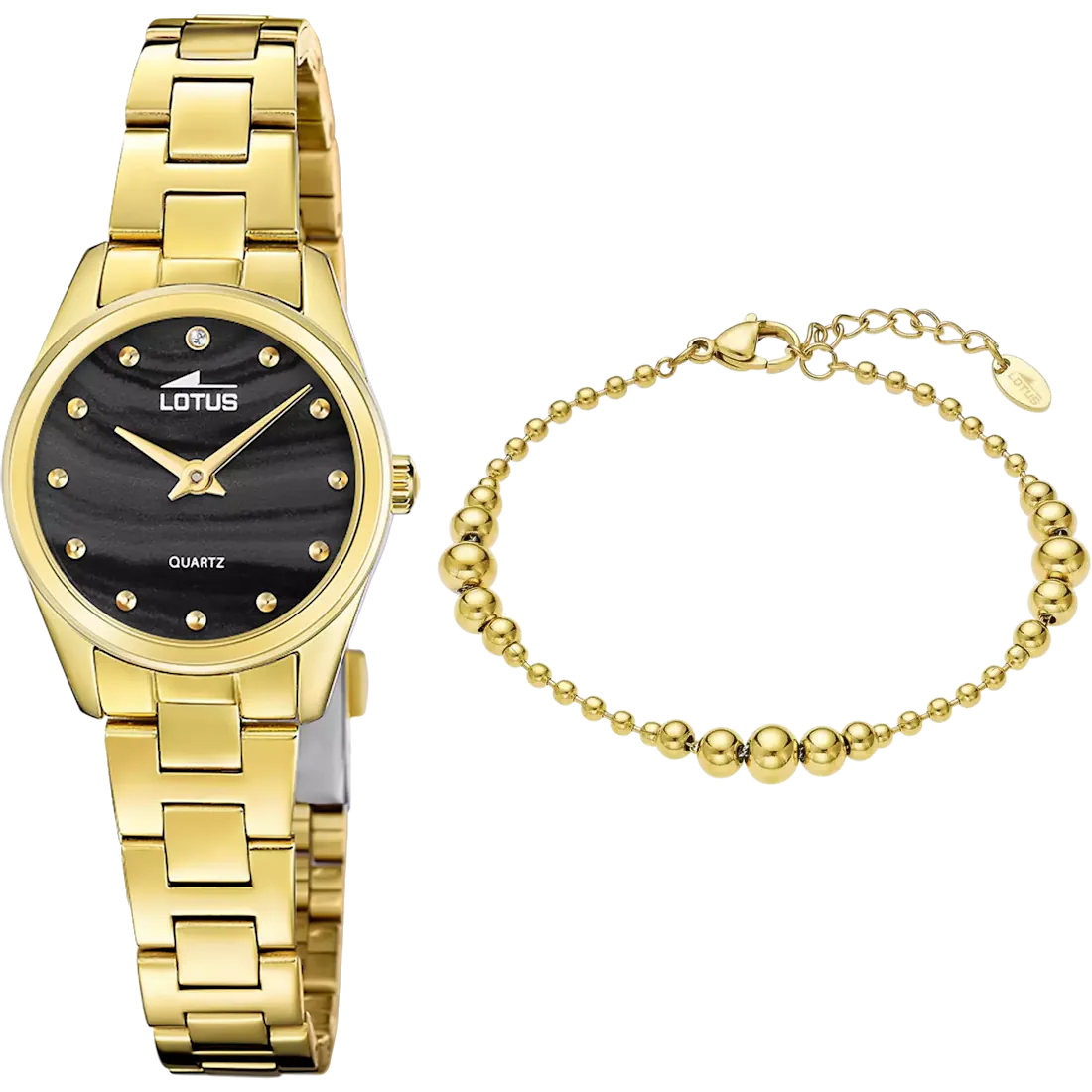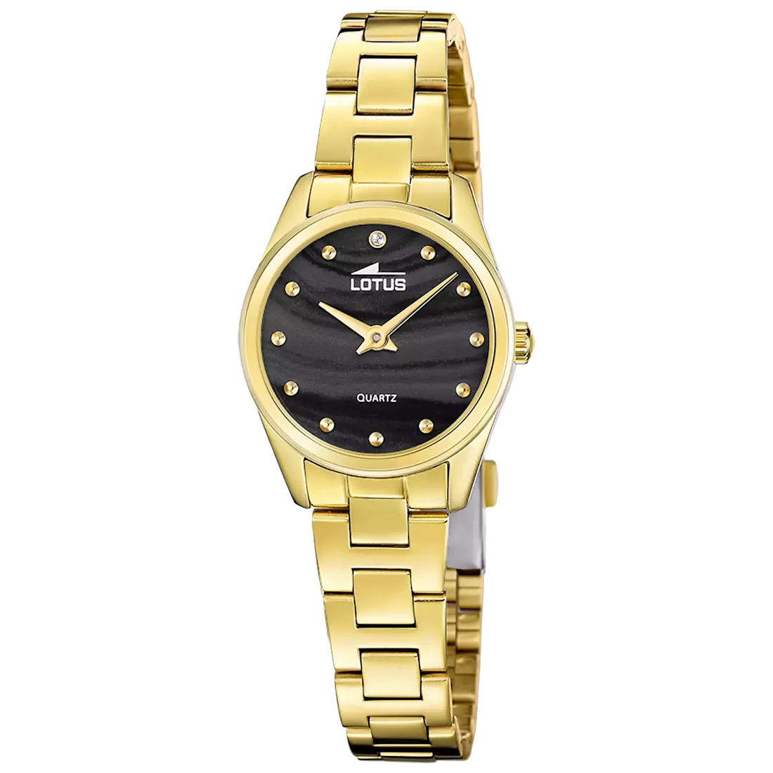 Úr: Úrkassi: 26mm – gyllt stál Úrverk: Rafhlaða Vatnsvörn: 50M Skífa: Svört – vísar Gler: Hert gler Keðja: Gyllt stál Ábyrgð: Tveggja ára Armband: Efni armbands: Gyllt stál