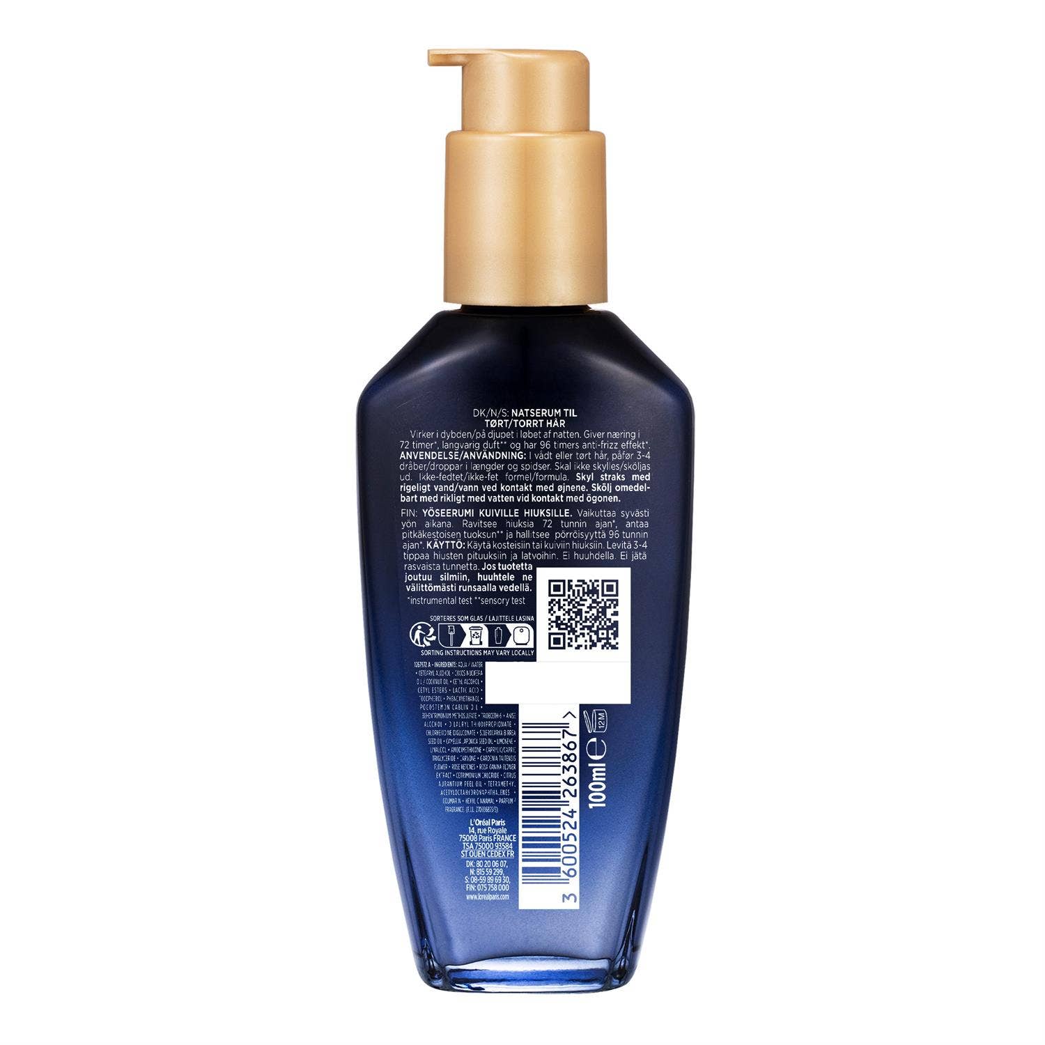 Næturserum sem vinnur gegn úfnu hári og veitir næringu. Með notalegum ilmi.