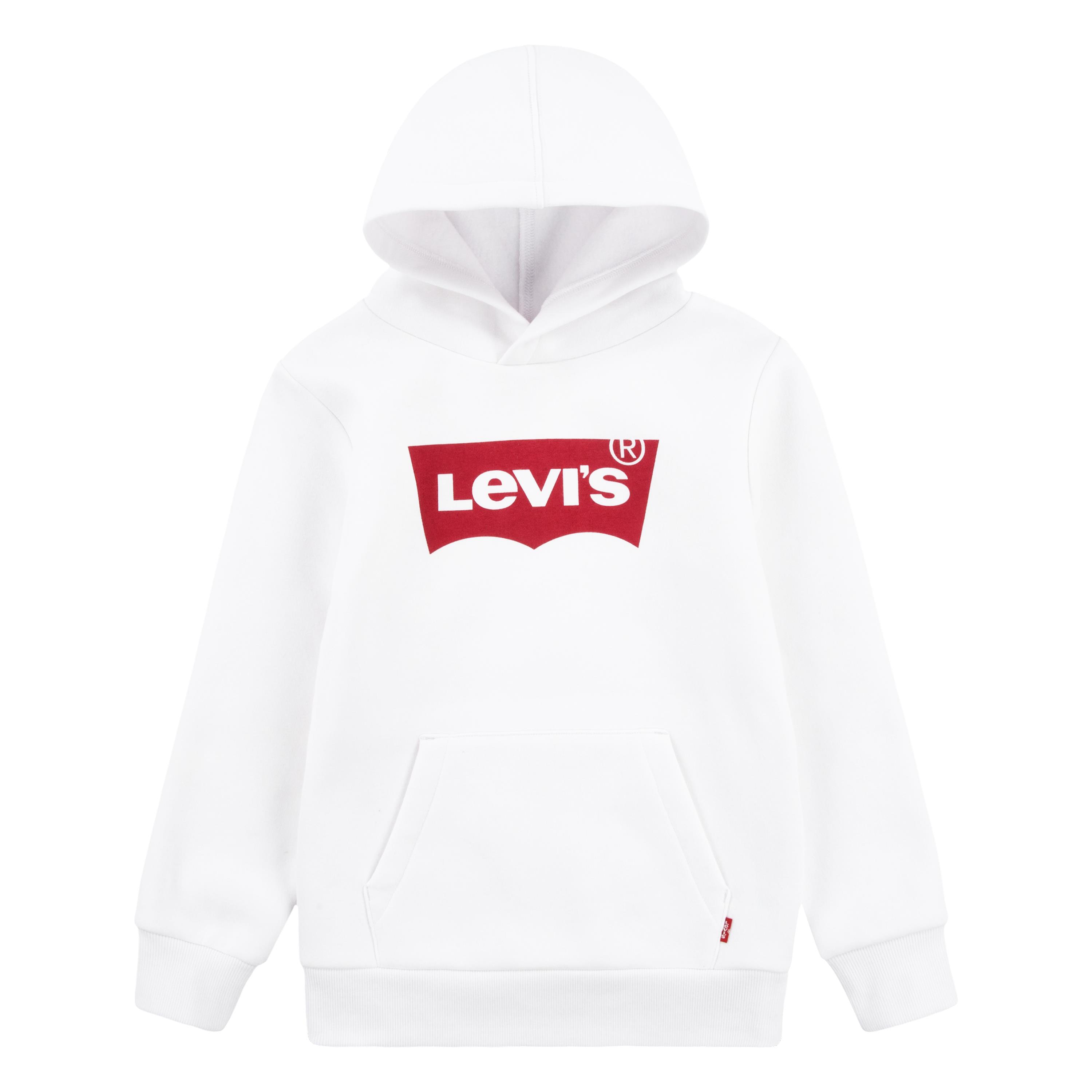 Hvít hettupeysa frá Levis með stóru logo að framan, stórum opnum vasa og stroff við ermar og mitti. 100% bómull.