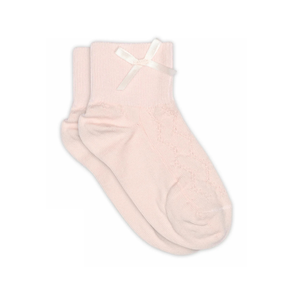 Fallegir, ljós bleikir ökklasokkar með slaufu. 80% bómull, 17% polyamide og 3% elastane.