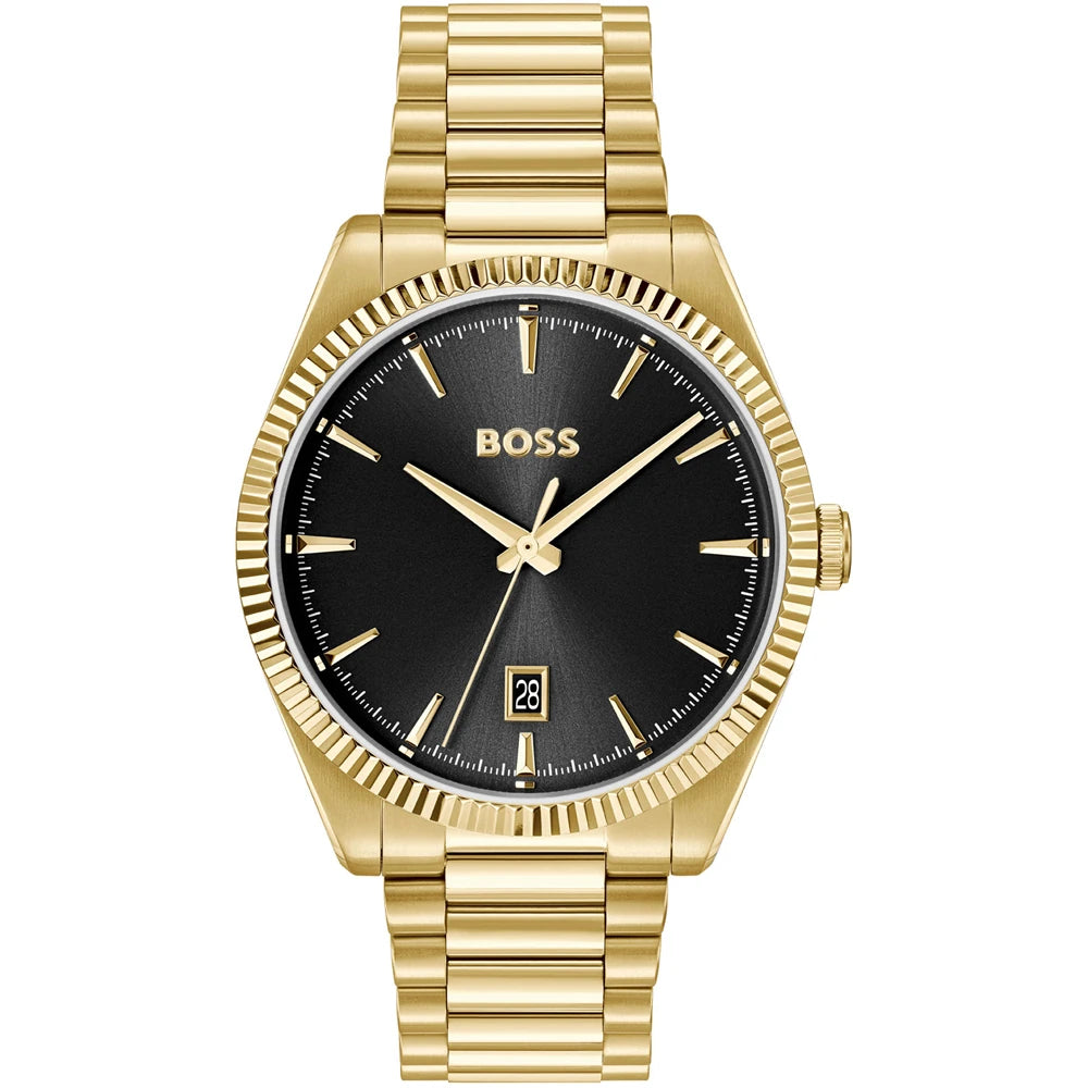 Hugo Boss Cheswick Vörunr:1514312 Fallegt herraúr frá Hugo Boss. Gangverk:Rafhlaða/Quartz Stærð:40mm Úrkassi:Gyllt Stál Keðja/ól:Gyllt Stál Skífa:Svört Gler:Hert gler Vatnsvörn:50m ... Sjá nánar