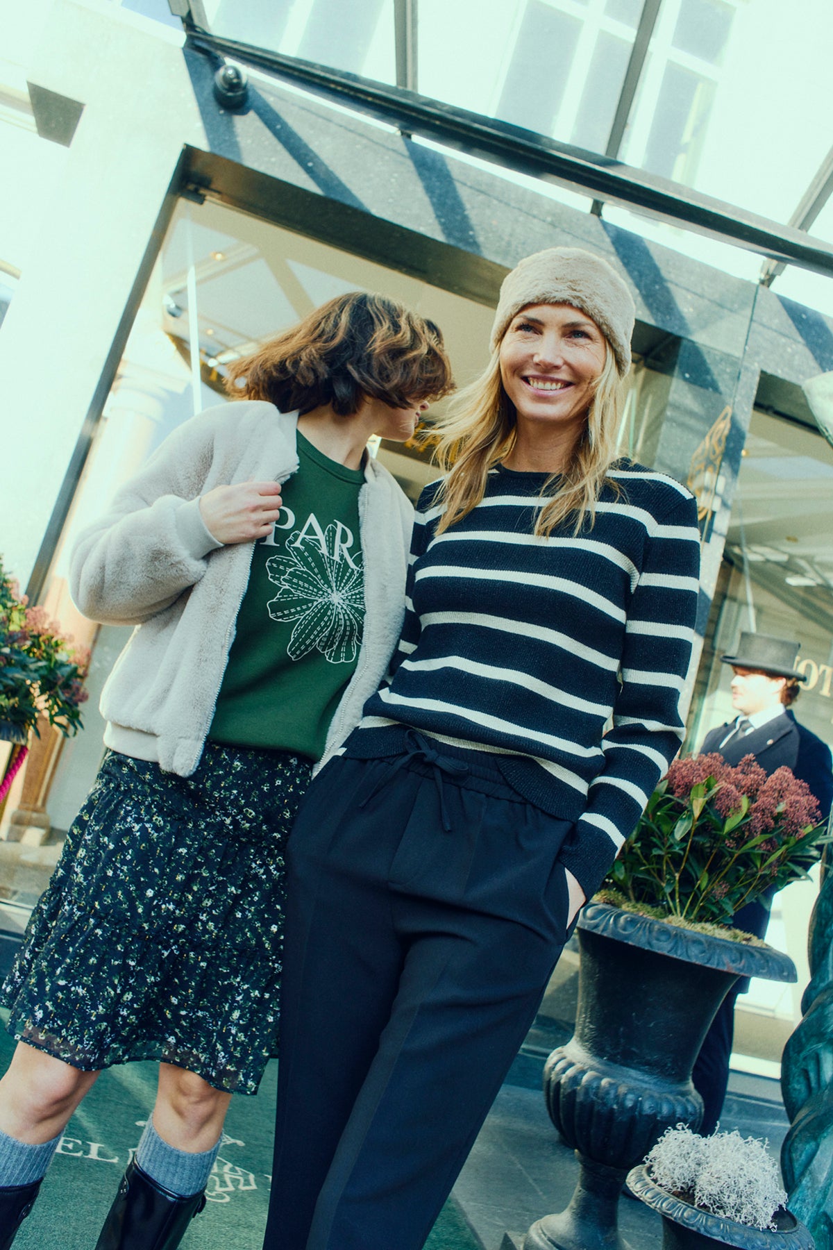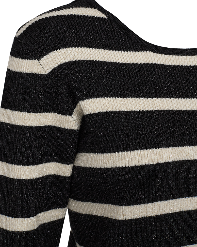 Falleg peysa með glimmeri í sem gerir hana meira sparilega frá Free/Quent. 41% Viscose 23% Polyamide 18% Metal þráður 18% Polyester