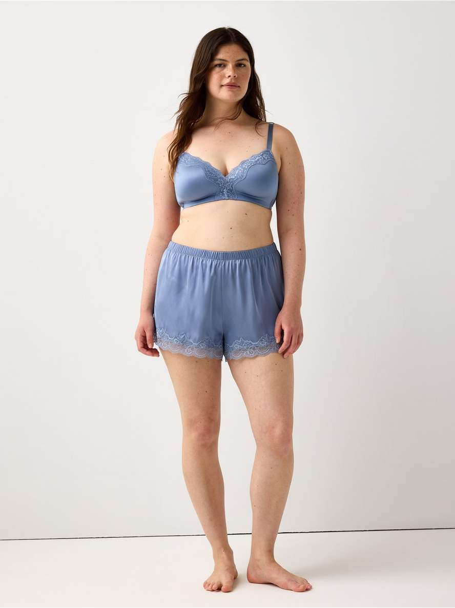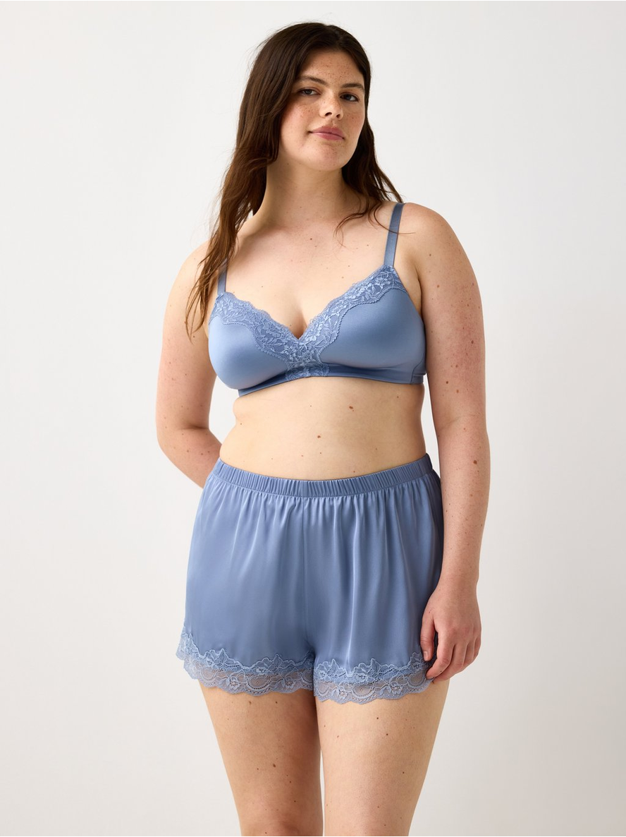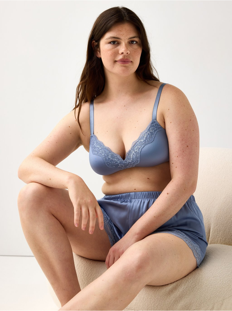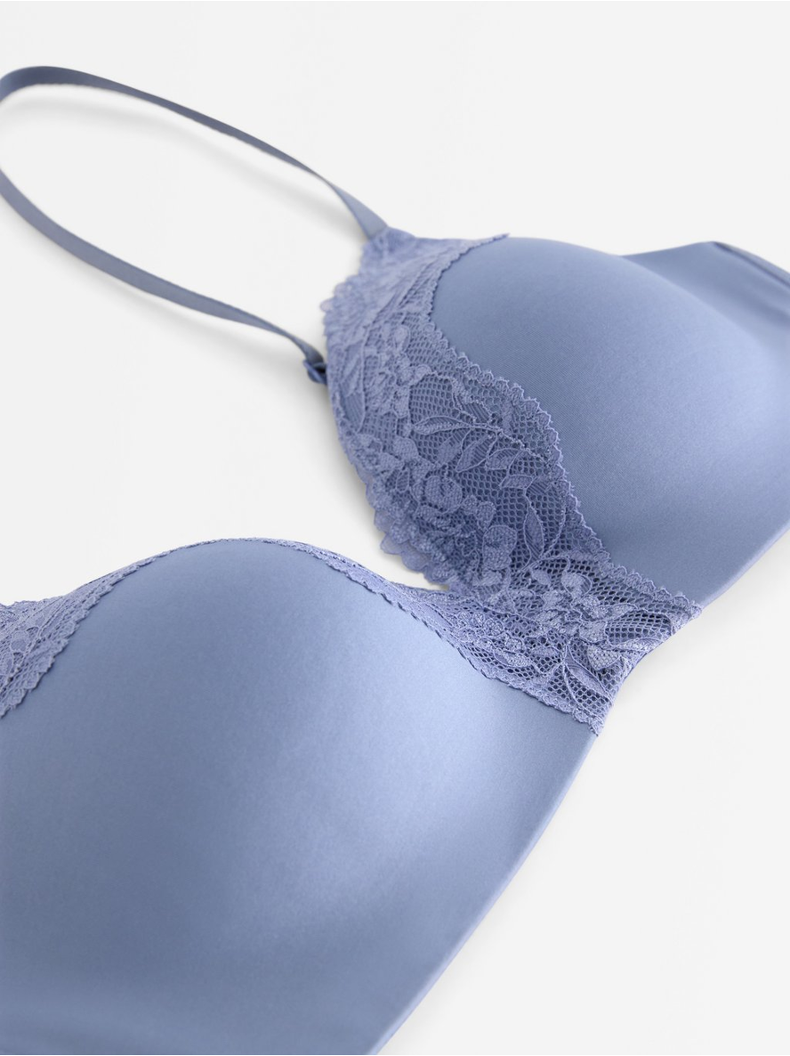 A comfy seamless bra with soft cups with lace, thin padding and no underwire. Slim, adjustable shoulder straps Midi coverage Wire-free The hook and eye closure on bras varies in ... Sjá nánar