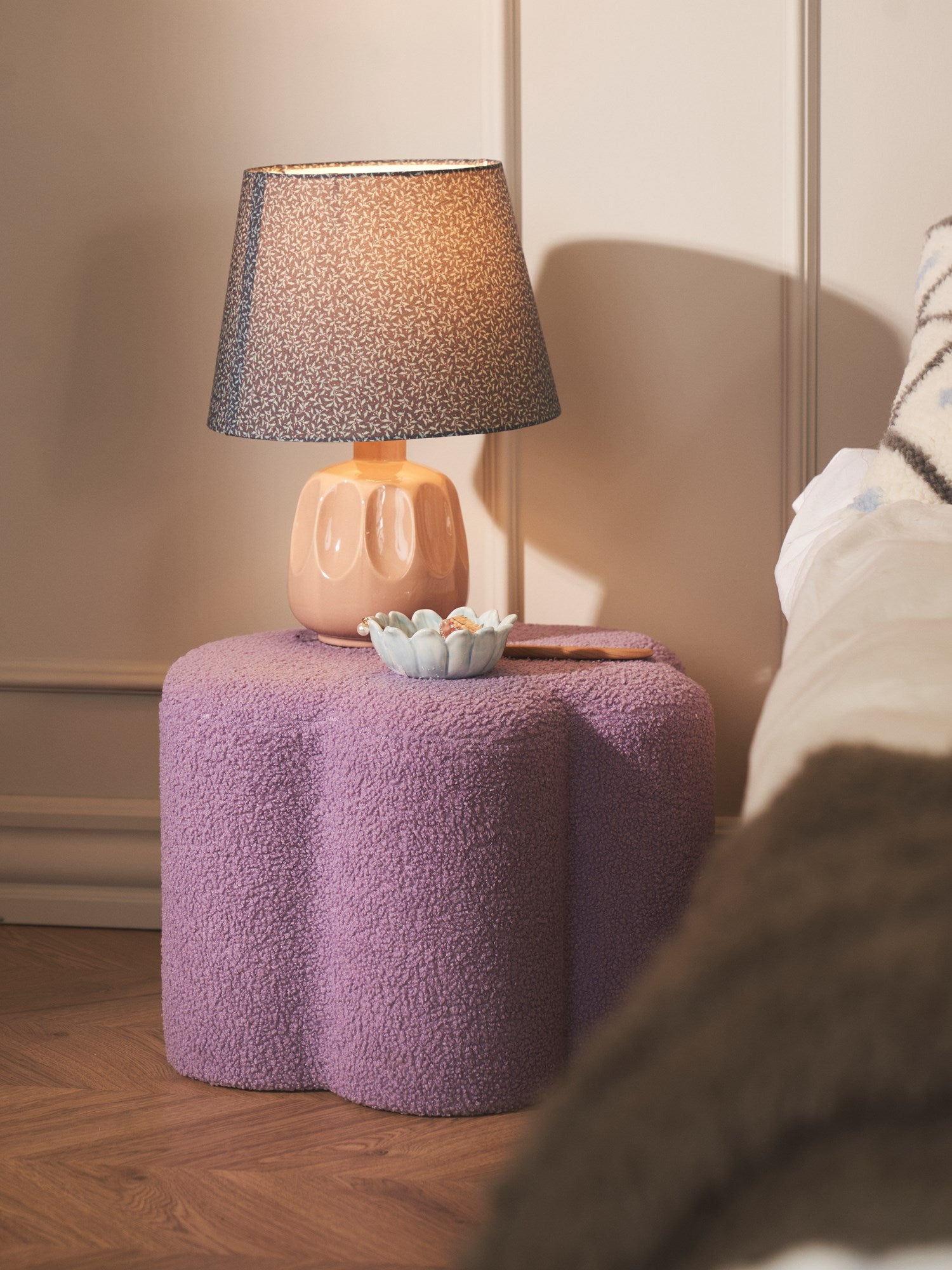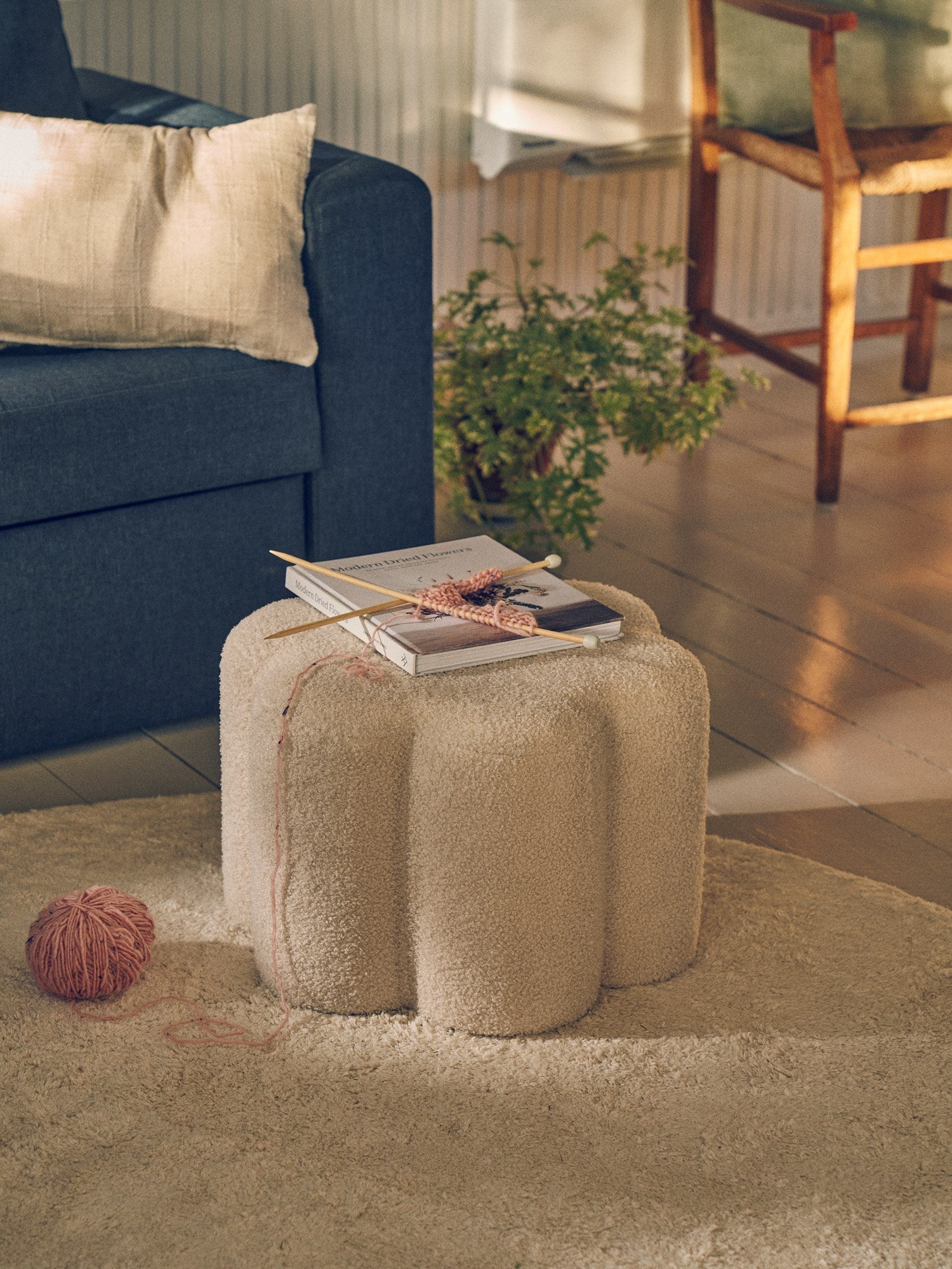 Elegant pouffes After a long day, Clara likes to take a moment to rest. She is especially fond of this lovely pouffe that makes the perfect footrest.