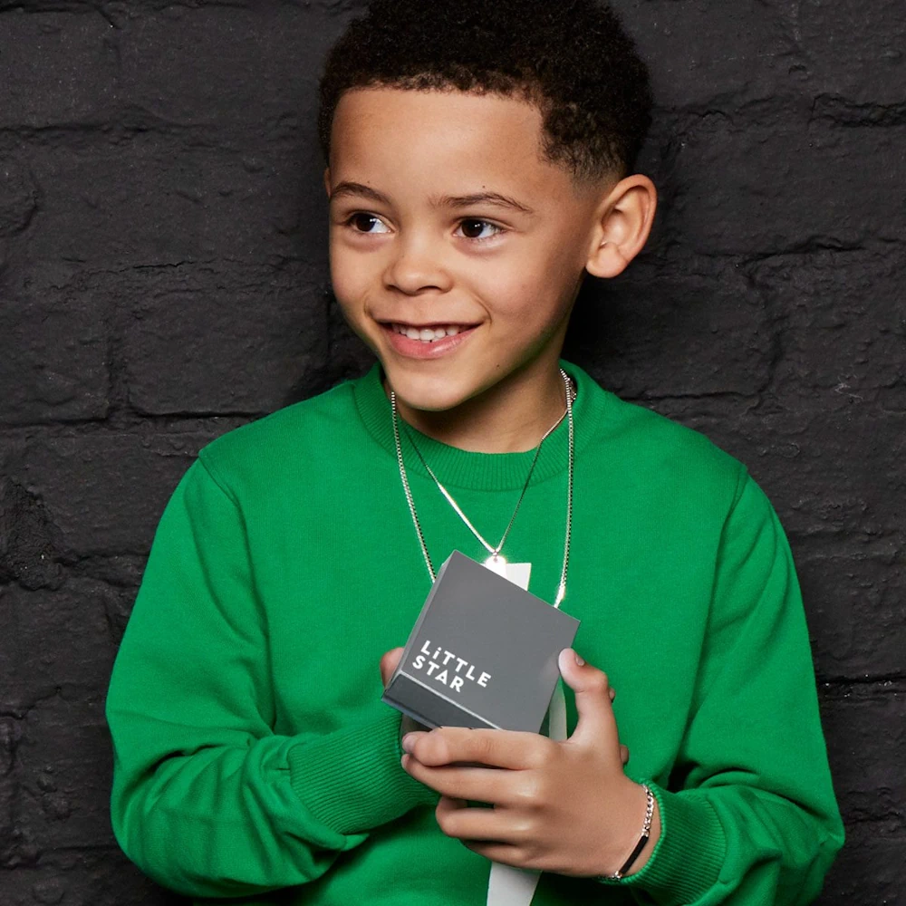 Glæsileg barnahálskeðja. Efni keðju: Silfur Aldursbil: Tveggja til sextán ára (þetta er einungis viðmið)