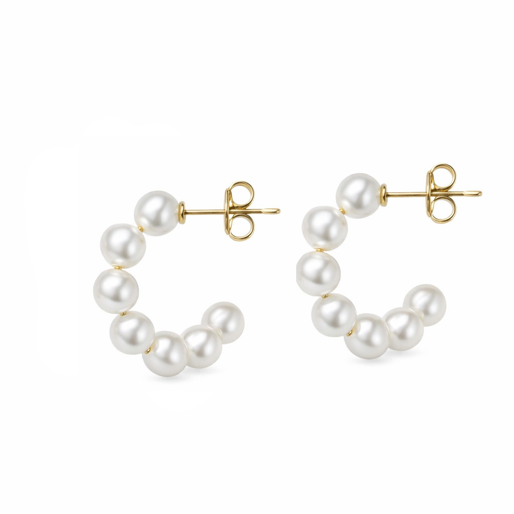 Skemmtilegir eyrnalokkar með perlum. Hægt er að taka perlunar af og nota hringina staka. Perluskartgripirnir frá Oceania fylgja nýjustu tískustraumum í skarti. Fallegt skart á góðu verði.
