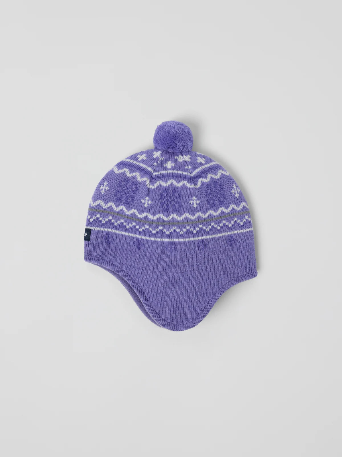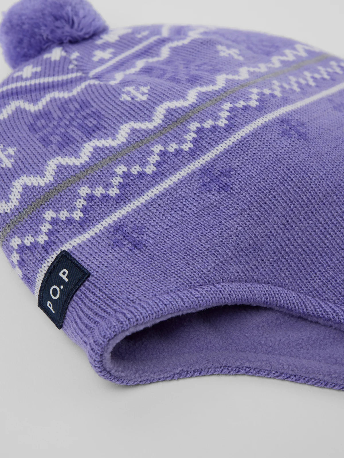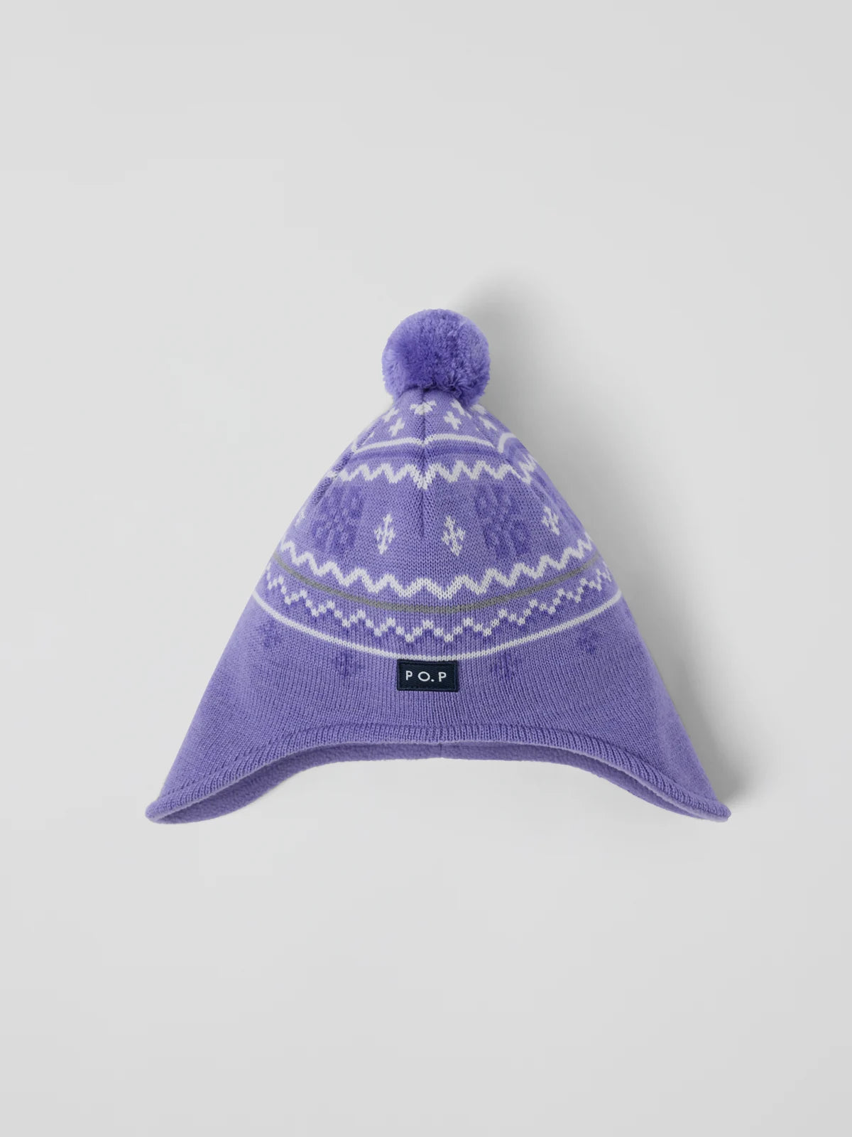 Windproof fleece lined hat in wool blend jacquard Windproof with soft lining and tie fastening Windproof helmet hat in a warm wool blend, with a lovely pom-pom. The hat is lined with soft ... Sjá nánar