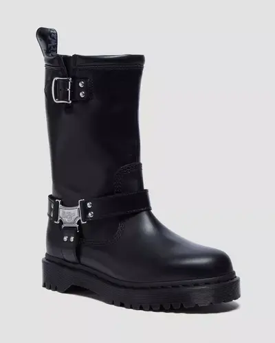 Há leðurstígvél frá Dr. Martens með ólum.