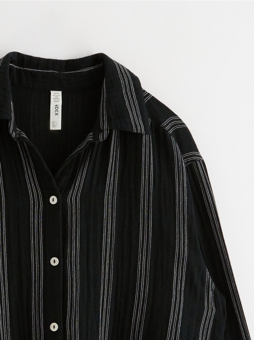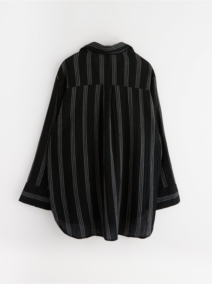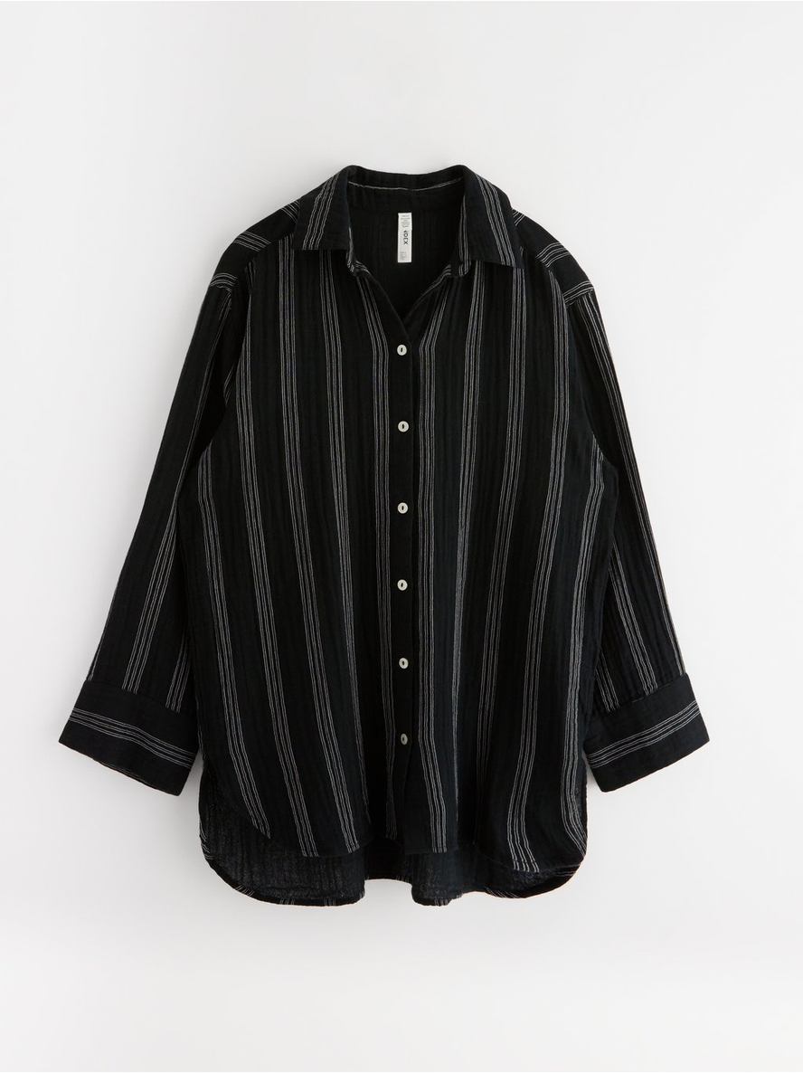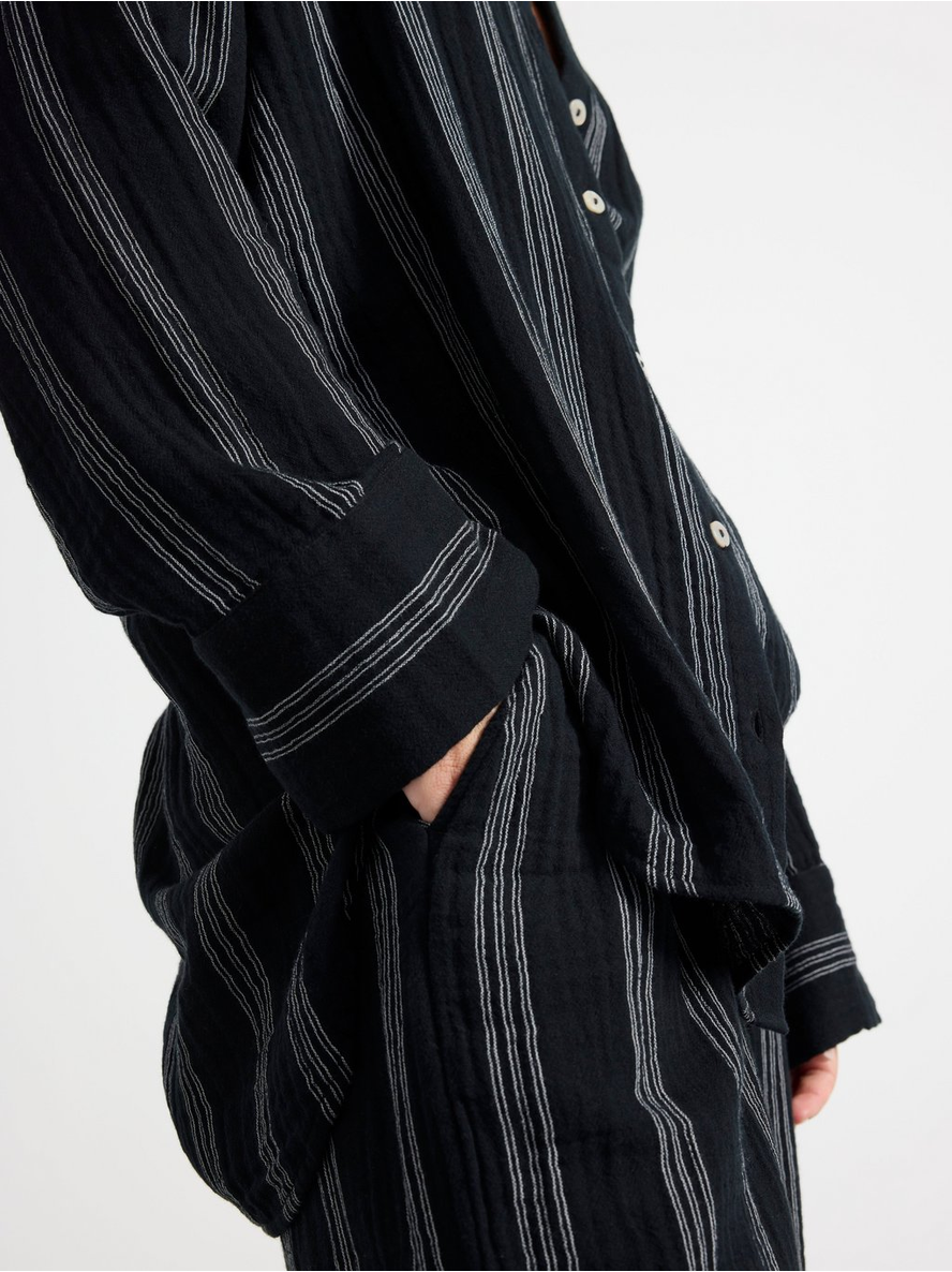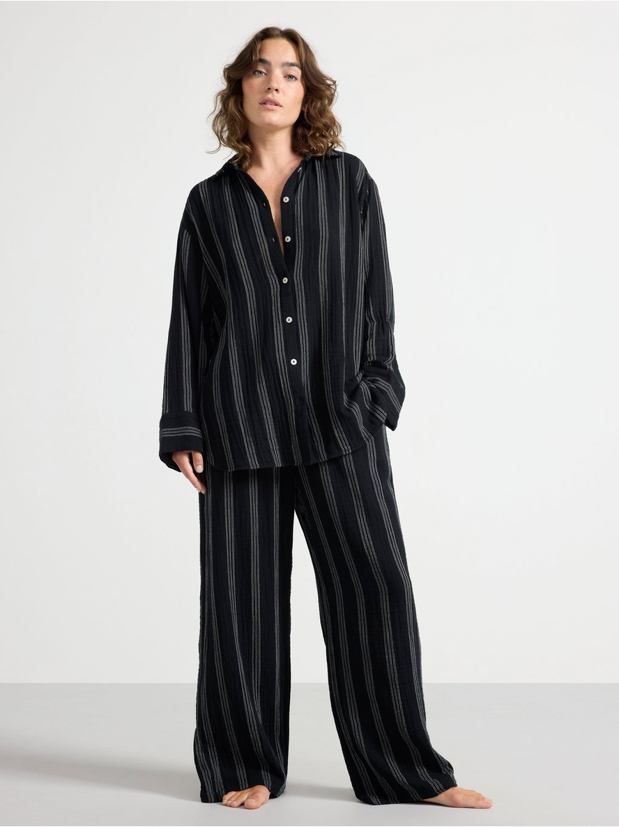 Soft, lightweight pyjama shirt with a classsic collared neckline, button closure and an oversized fit. Collar Button closure Wide long sleeves Rounded hem Contains 85% organic ... Sjá nánar