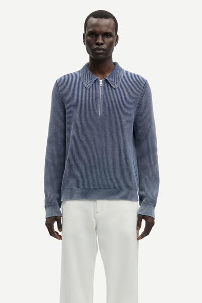 Töff hálfrennd peysa frá Samsøe Samsøe úr riffluðu prjónuðu efni og með polo kraga.