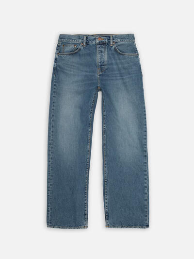 Flottar víðar gallabuxur frá Nudie Jeans í fallegum vintage-bláum tónum.