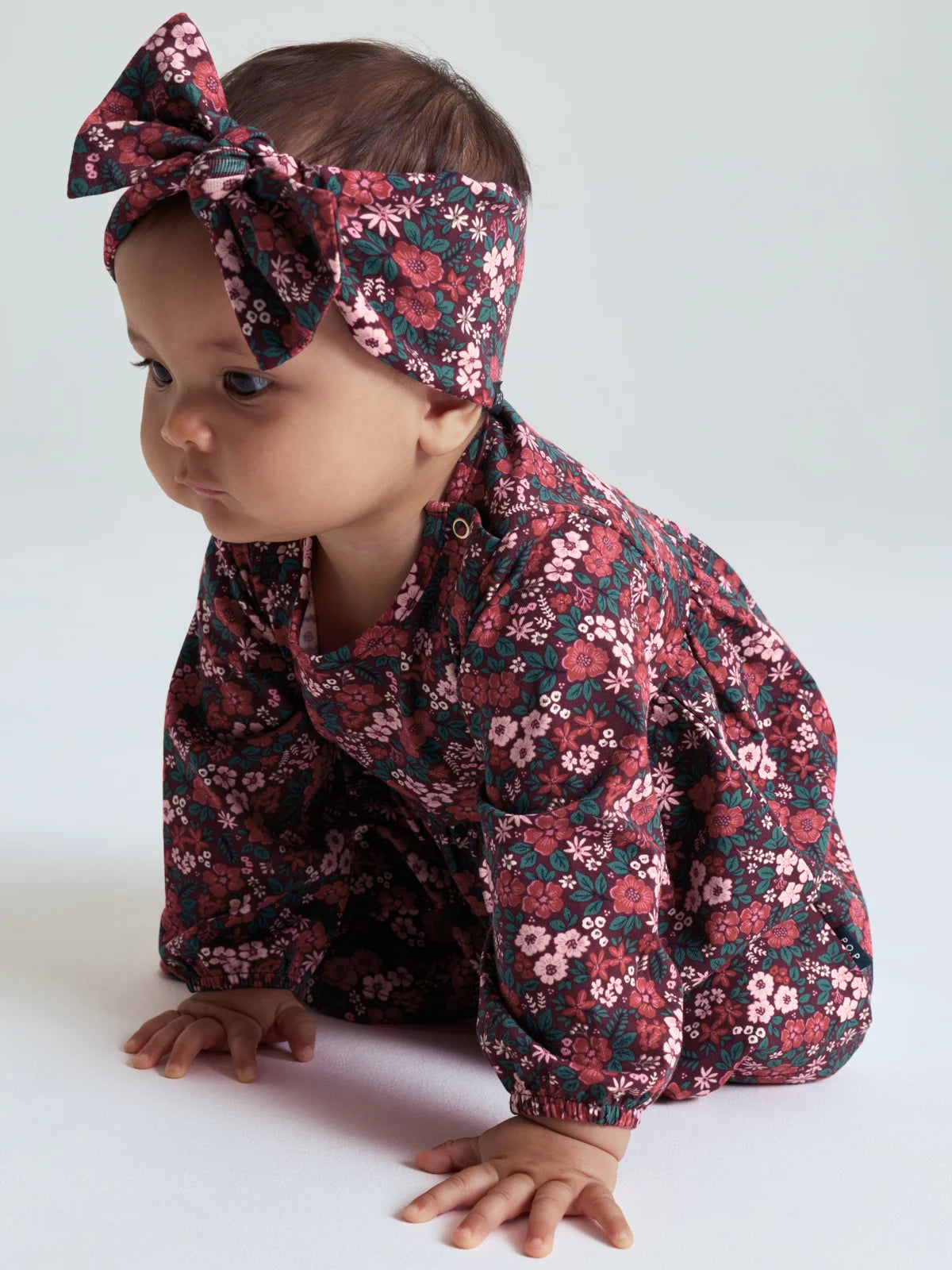 Brightens up both everyday and party wear Soft and stretchy cotton jersey Elastic headband in soft, organic cotton jersey. The headband features an allover print of small hearts and a fancy bow. Sjá nánar