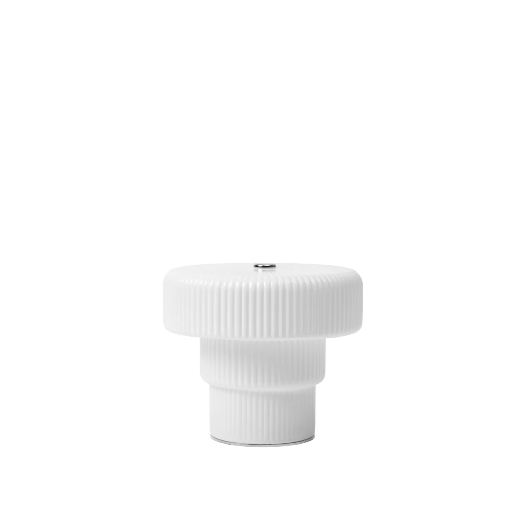 Add a soft glow to your space with the Ripple Portable Lamp. Crafted from mouth-blown glass with a rippled surface and white opal finish, it casts a warm, diffused light. With three brightness ... Sjá nánar