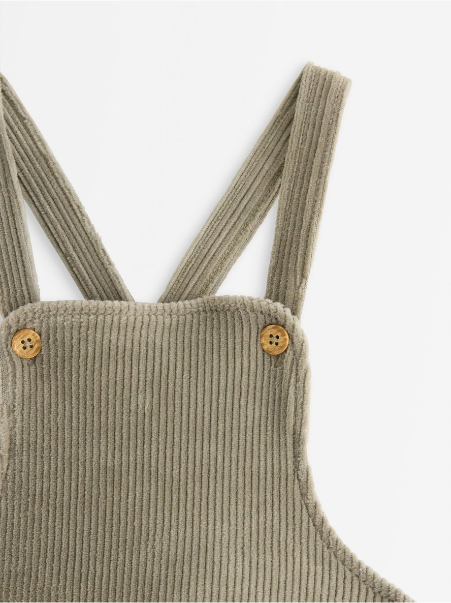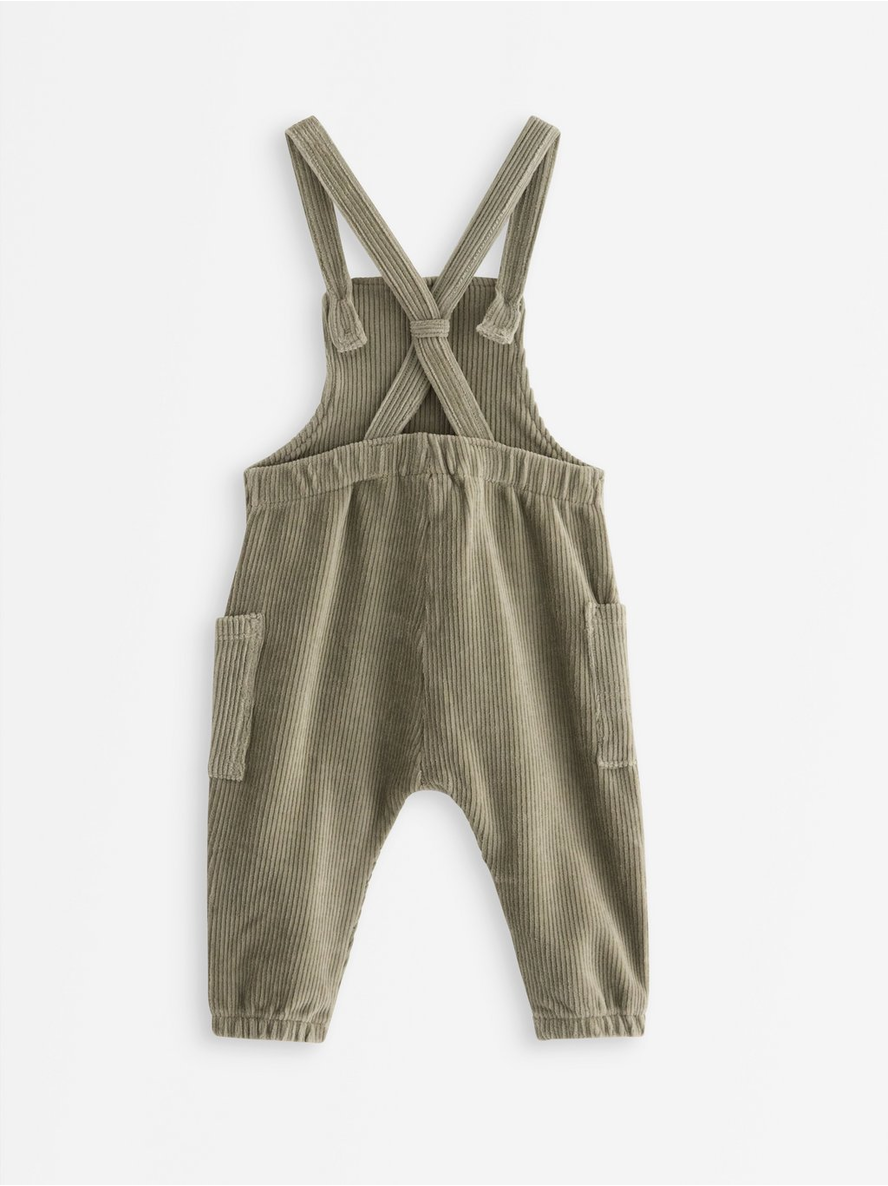 Bib trousers in soft and stretchy corduroy with side pockets. Soft and stretchy Adjustable shoulder strap Contains 82% organic cotton 82% bómull 16% pólýester 2% elastan