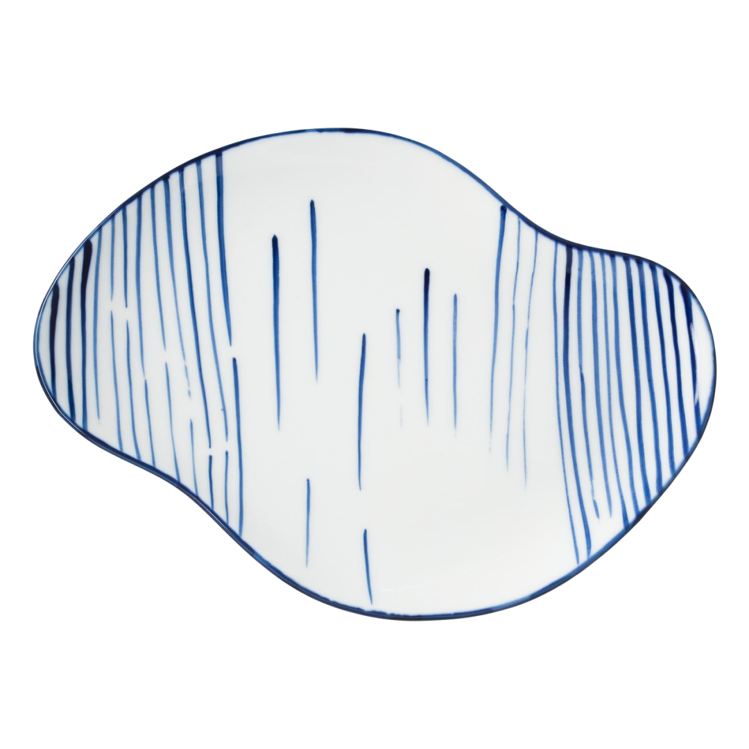 Handgerður blár Skýjadiskur úr postulíni, sem þolir vel uppþvottavélar og örbylgjuofna. Diskurinn er 24 x 17cm að stærð. | Skýjadiskur - Klassíksa Línan - Þoka