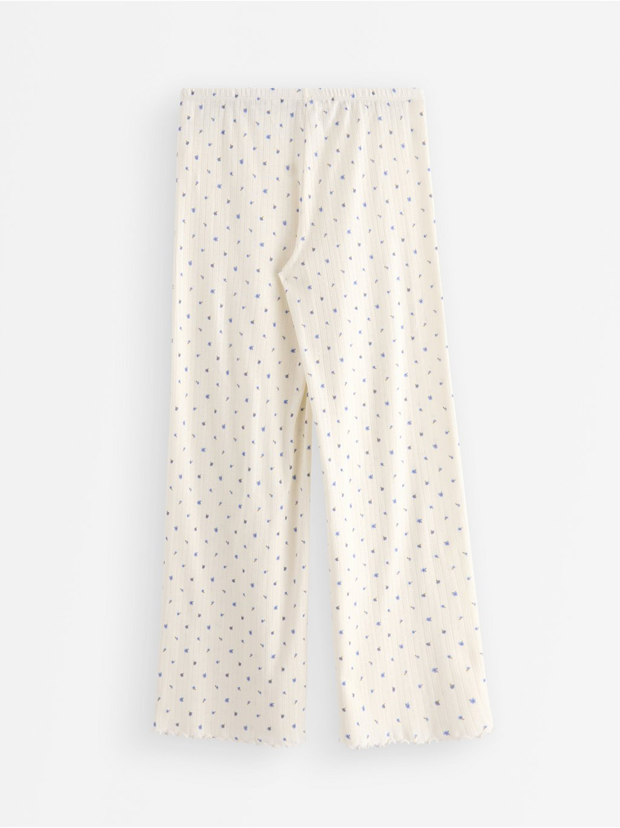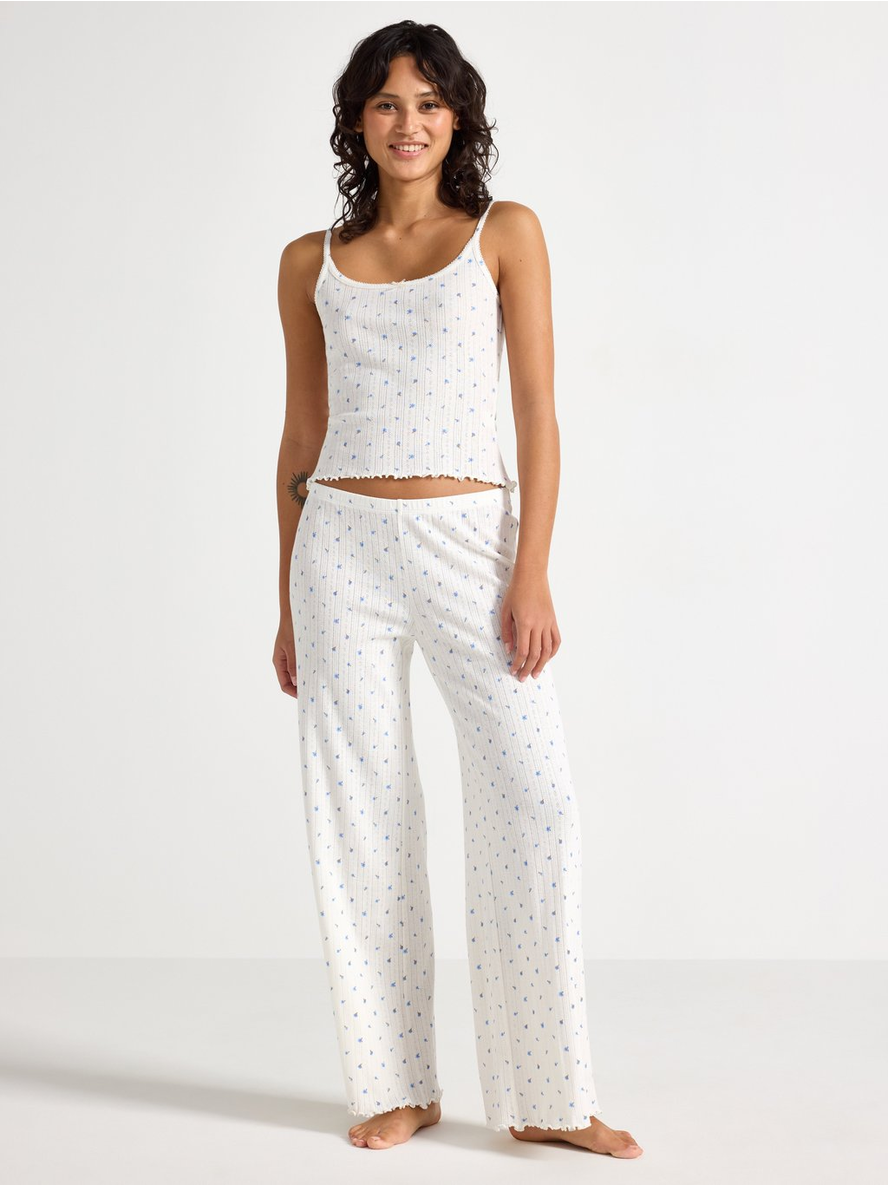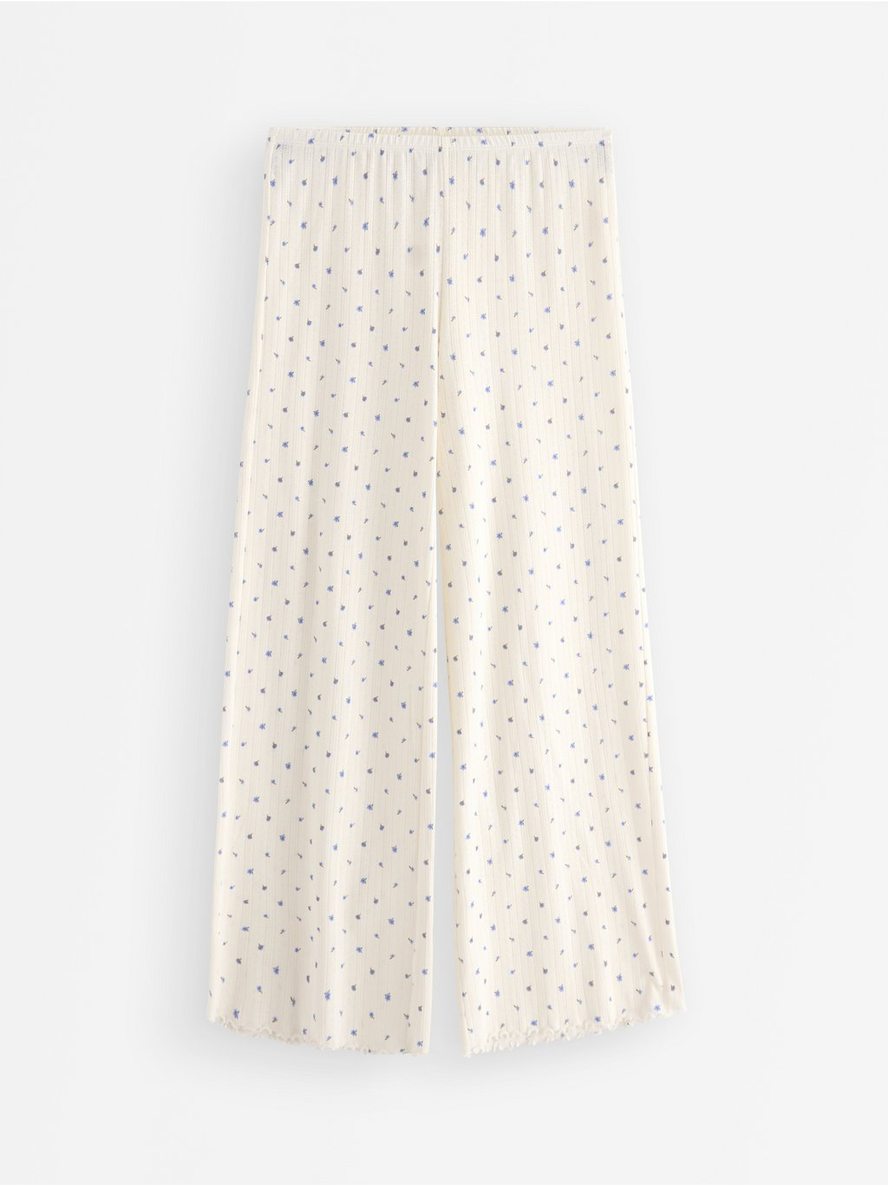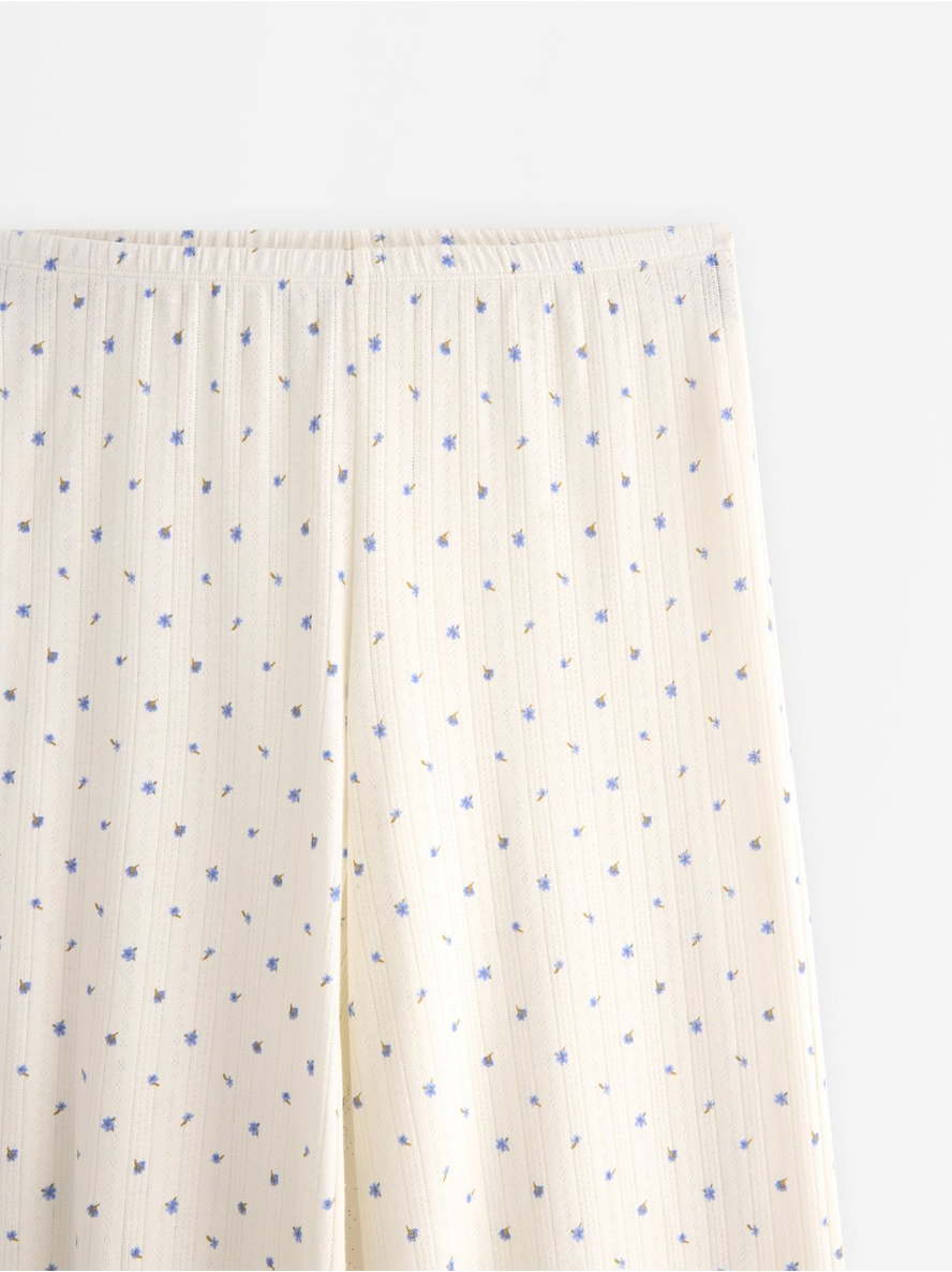Wide pyjama trousers in pointelle with scalloped edges. Elastic waist Contains 80% Cotton in Conversion Length: 76 cm in size M 100% bómull