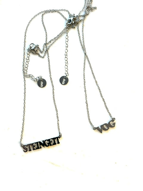 Sonur hálsmen úr ryðfríu stáli og gullhúðuðu stáli. Keðjan er 50cm með 5cm framlengingu. English: Steel necklace with 50cm chain and 5cm extension.