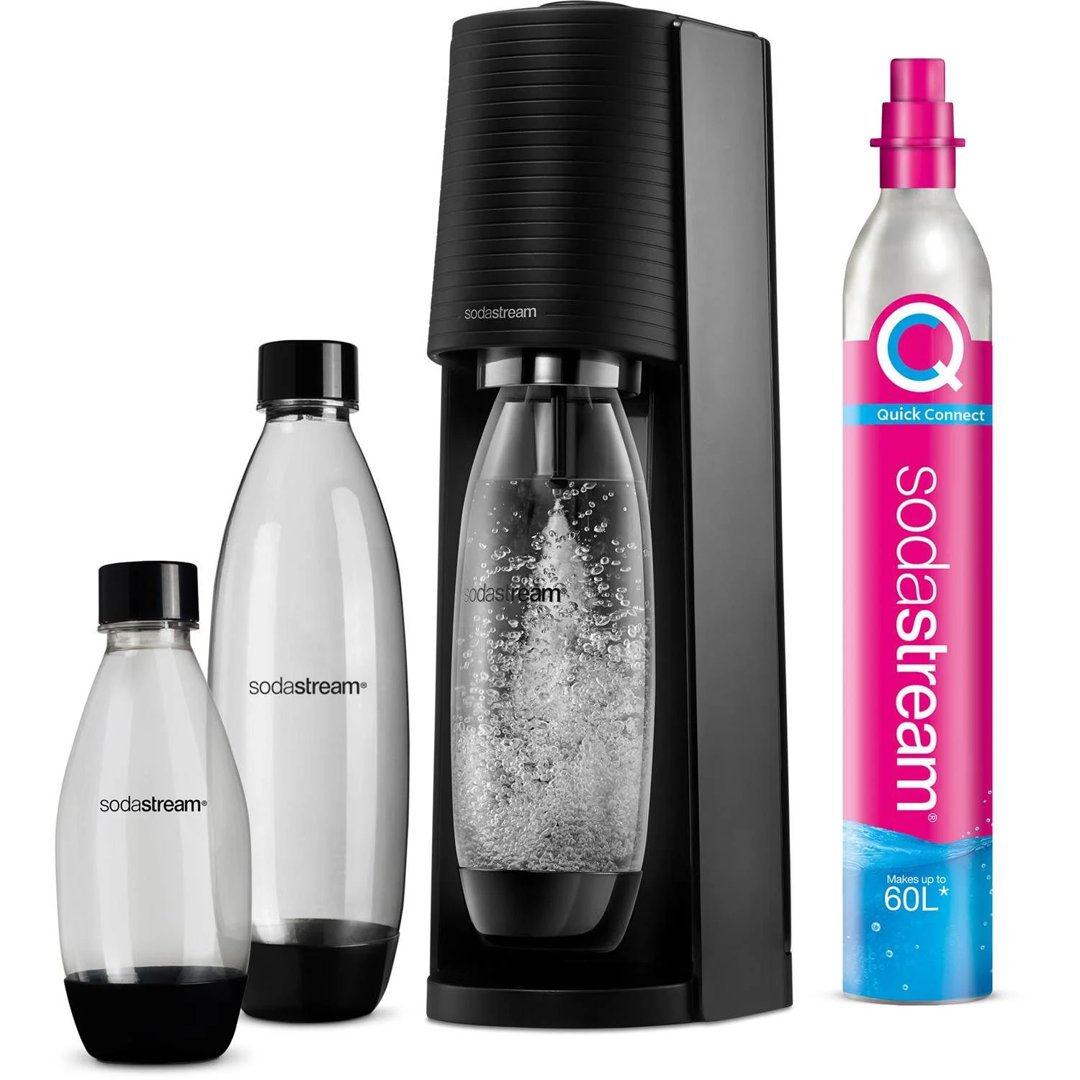 Terra Megapack Sodastream tæki 2 x 1,0 L Fuse flöskur og 1 x 0,5 L Fuse flöskur fylgja Allar flöskur mega fara í uppþvottavél Notar nýju Quick Connect kolsýruhylkin sem duga fyrir allt að 60 ... Sjá nánar