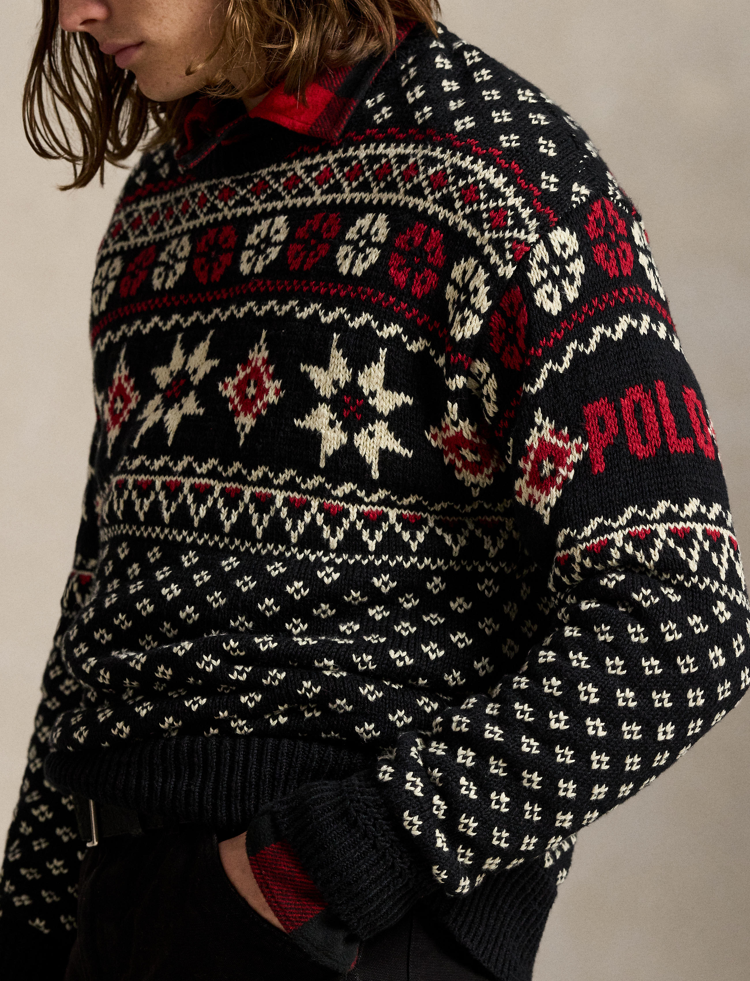 Inspired by a Polo Ralph Lauren garment from our archive, this sweater utilizes float-jacquard and selective ladder-back techniques to achieve its snowflake motif pattern. It is knit with a ... Sjá nánar