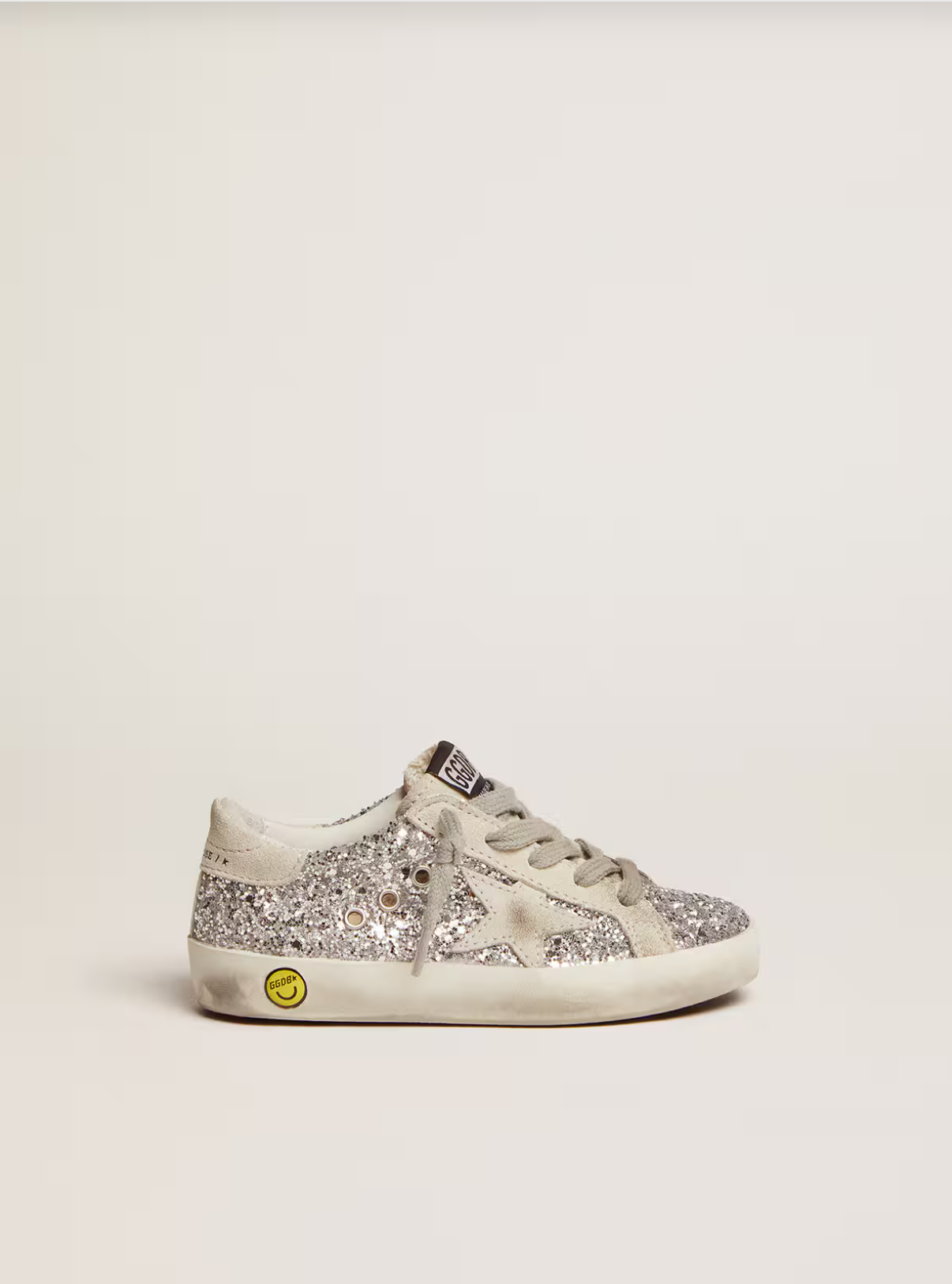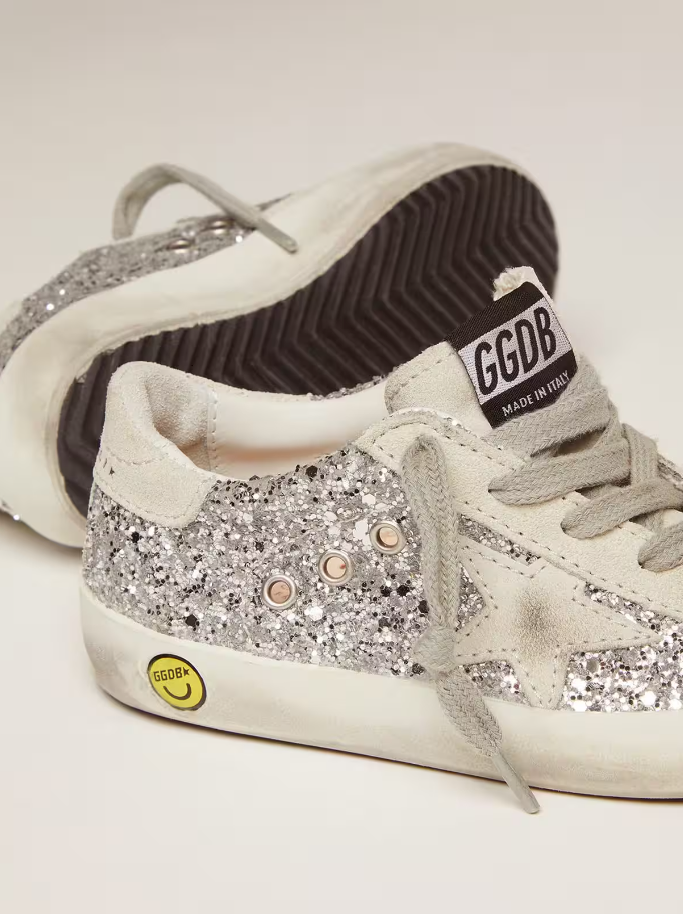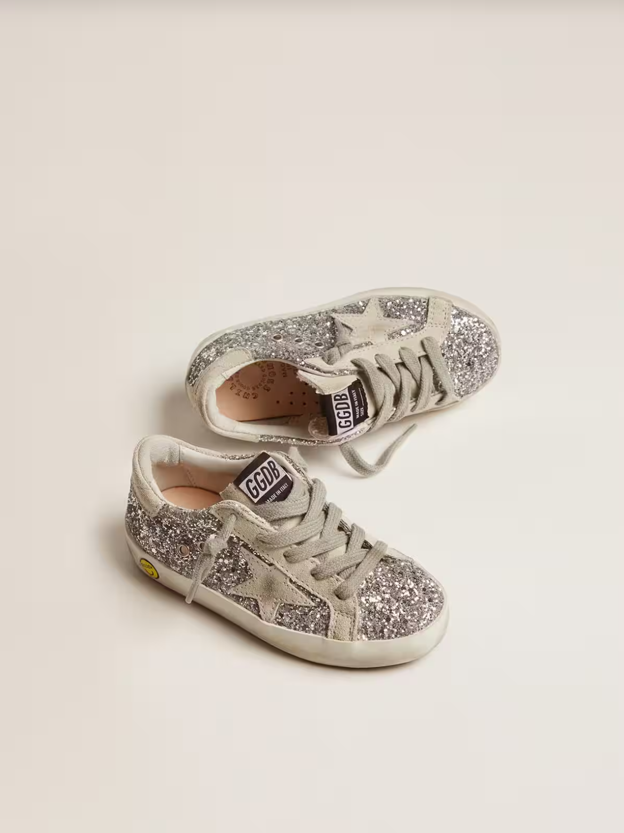 Silfraðir, glimmer strigaskór frá Golden Goose.