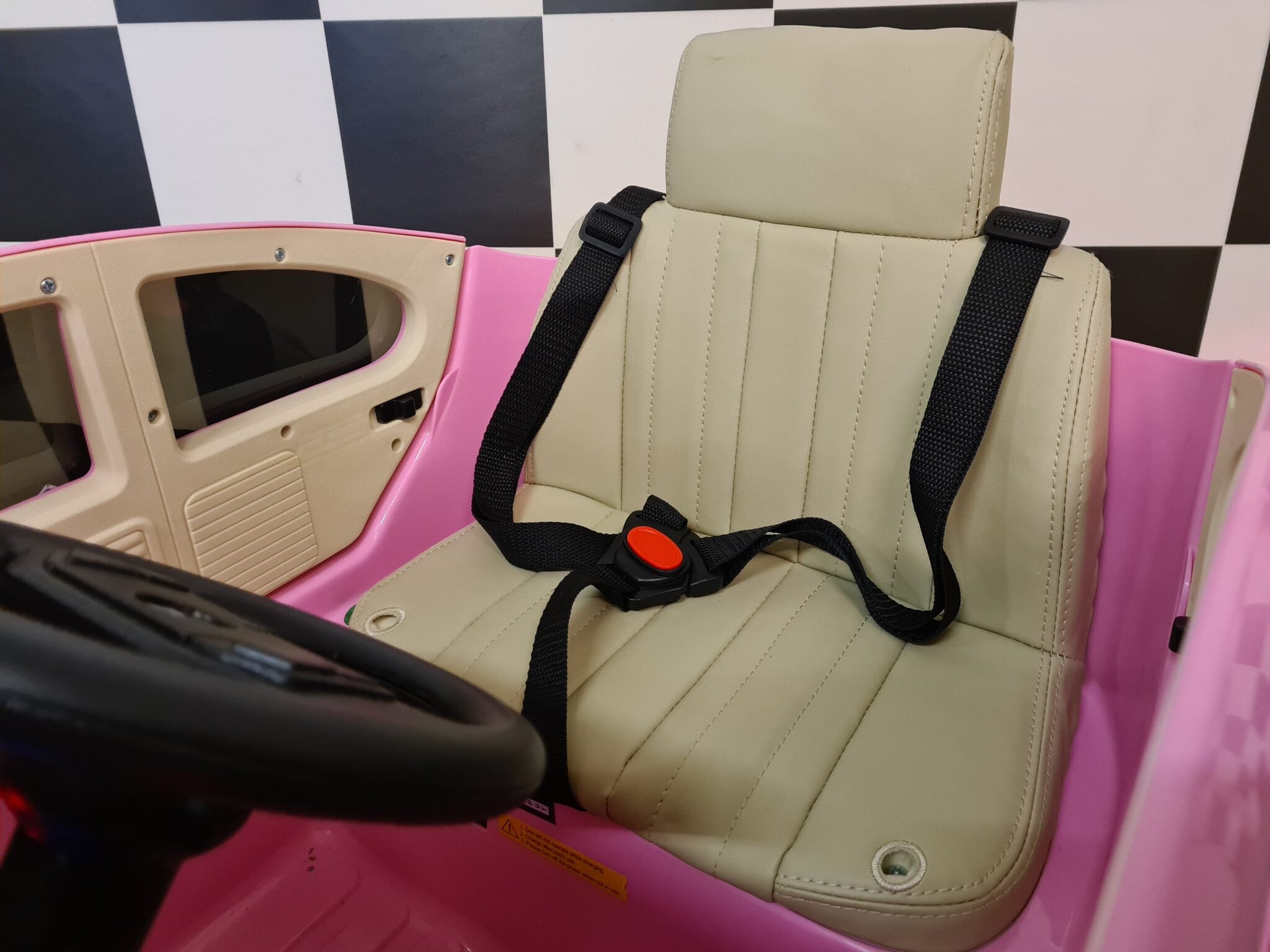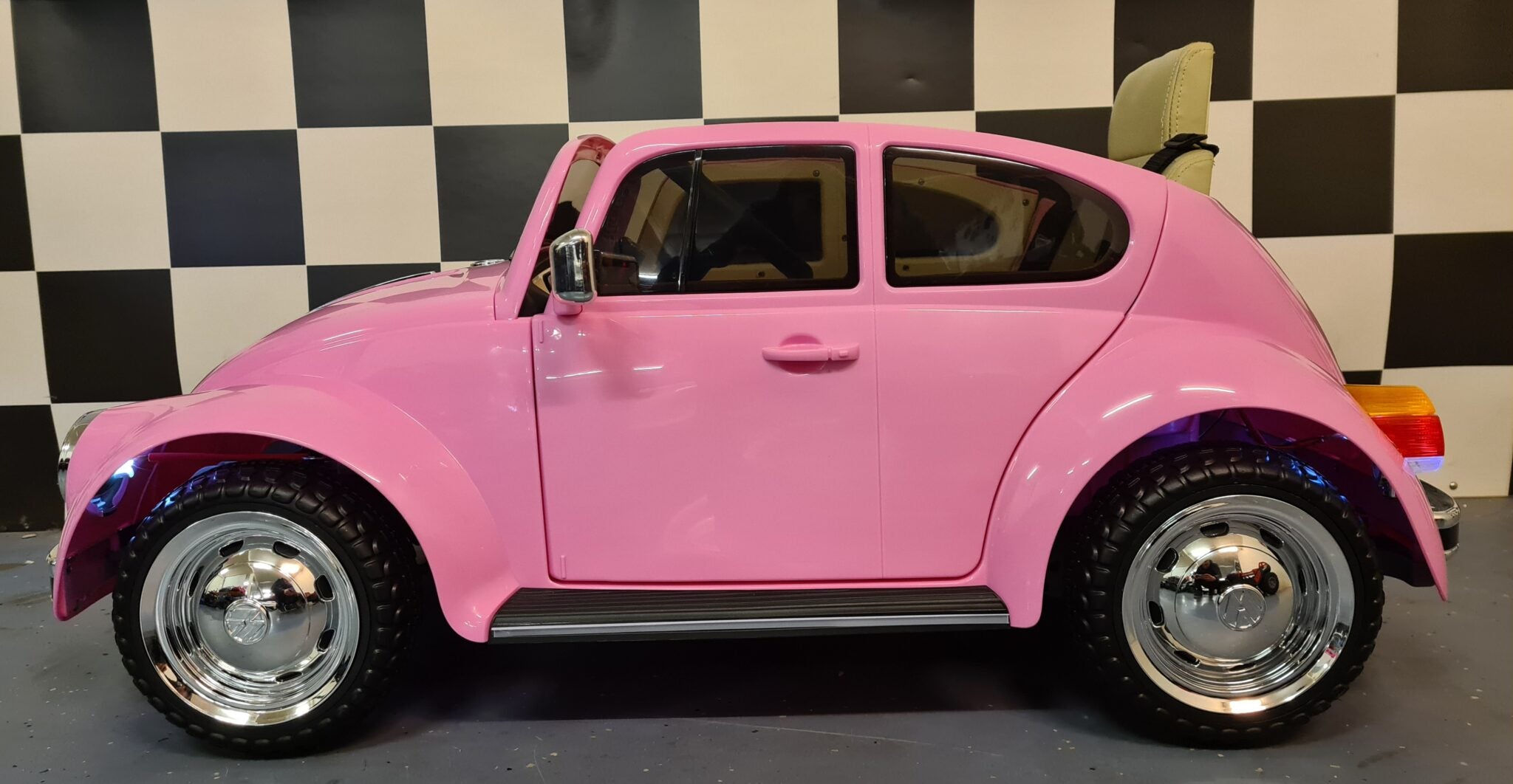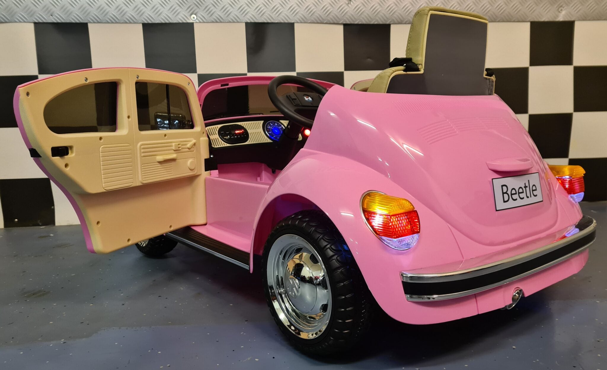 Frí heimsending gildir ekki af þessari vöru. Volkswagen Bjalla 12V Bleik Þessi rafmagnsbíll er með tveimur 30w mótorum og 12V rafhlöðu. Rafmagnsbíllinn er með þæginlegu "leður"sæti með ... Sjá nánar