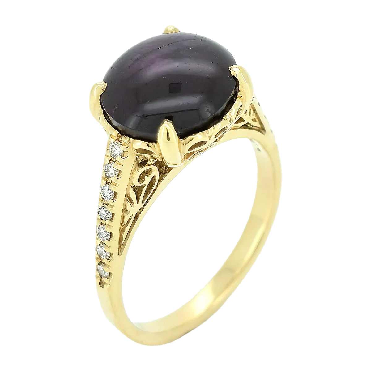 Efni hrings: 18kt gull Steinar: 16 demantar - 0,16ct - Top Wesselton VS | stjörnurúbín - 7,65ct