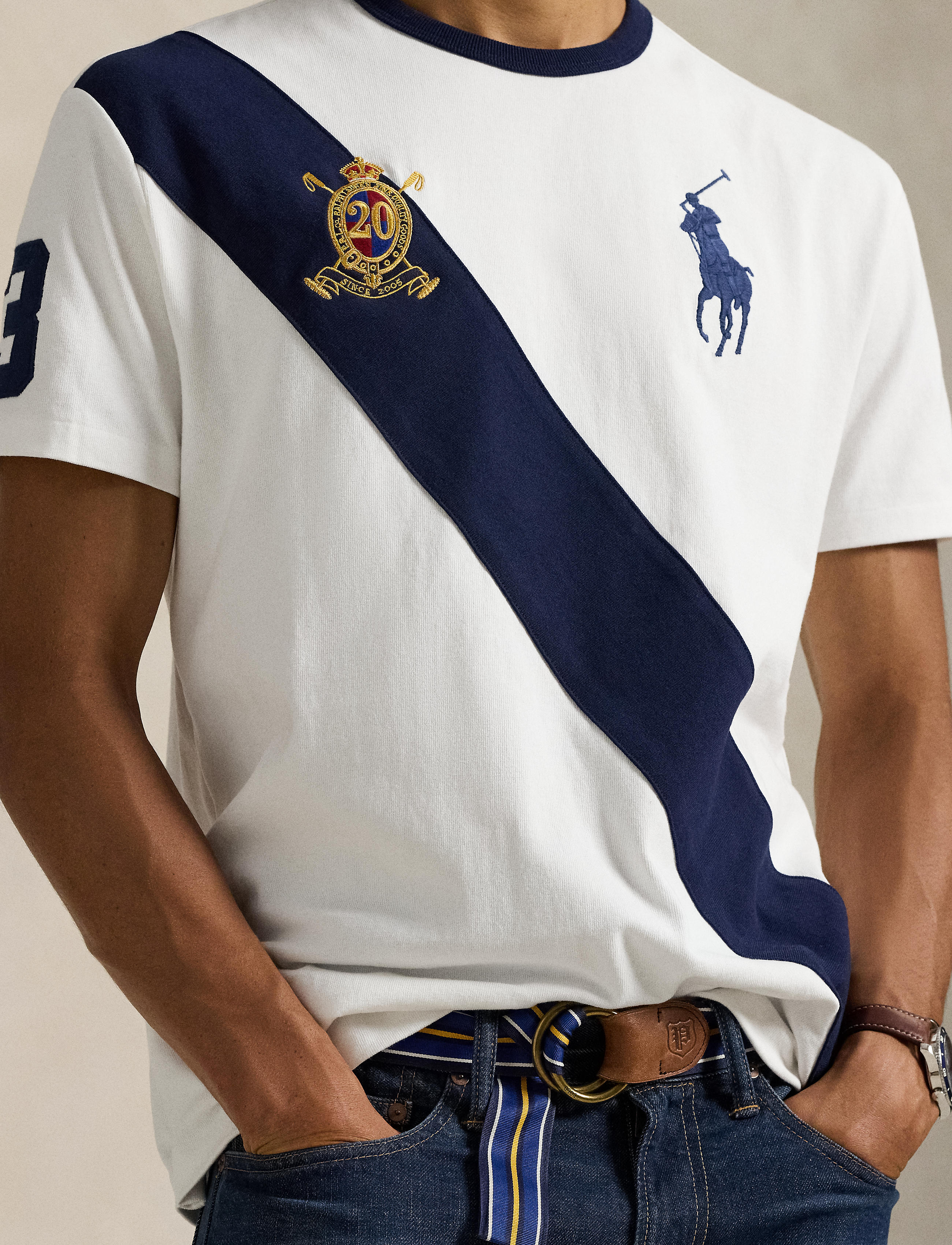 This Classic Fit jersey T-shirt features an equestrian-inspired crest that celebrates 20 years of Ralph Lauren’s iconic Big Pony. Classic Fit: Cut fuller through the chest, waist, and sleeve, ... Sjá nánar