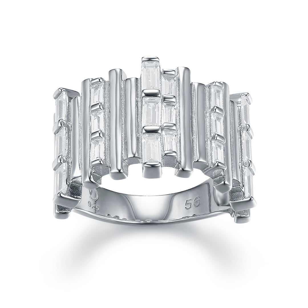 Glæsilegur hringur með innblæstri af String armbandinu sem hannað var af Guðbjarti heitnum. Strengirnir tákna náttúru okkar íslendinga og Baguette skornir sirkon steinarnir vatn.
