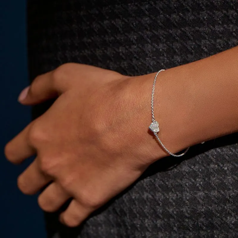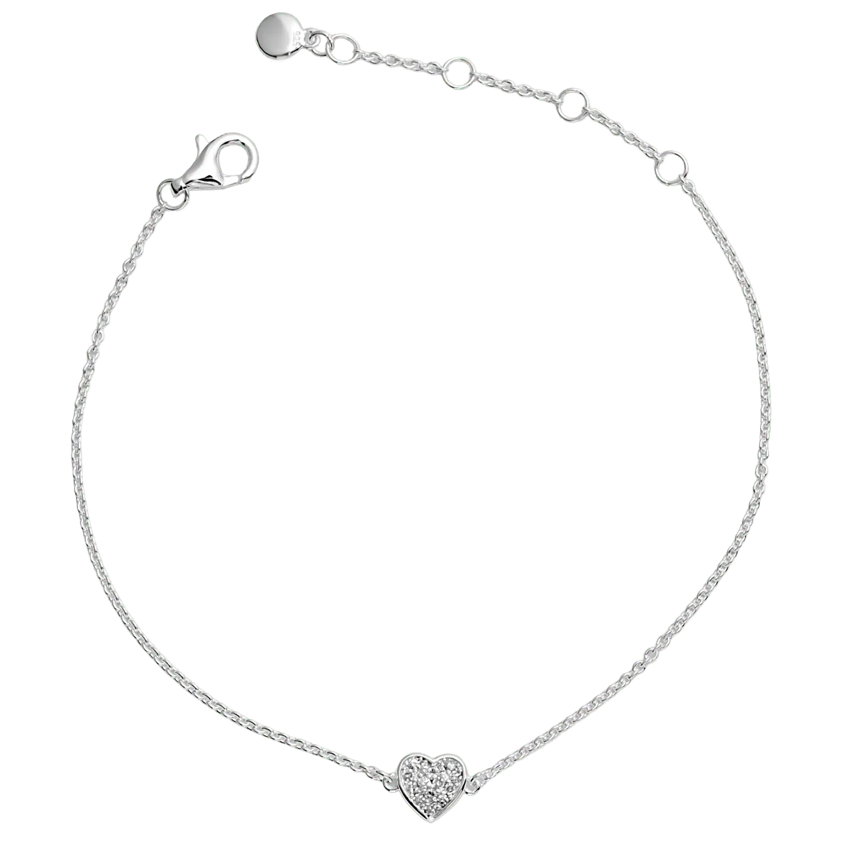 Glæsilegt armband með demöntum. Efni armbands: Silfur með platínuhúðun Stærð viðhengis: 6mm x 6mm Steinn: 14 demantar - 0,07ct Aldursbil: Börn til fullorðinna Lengd: 15-18cm
