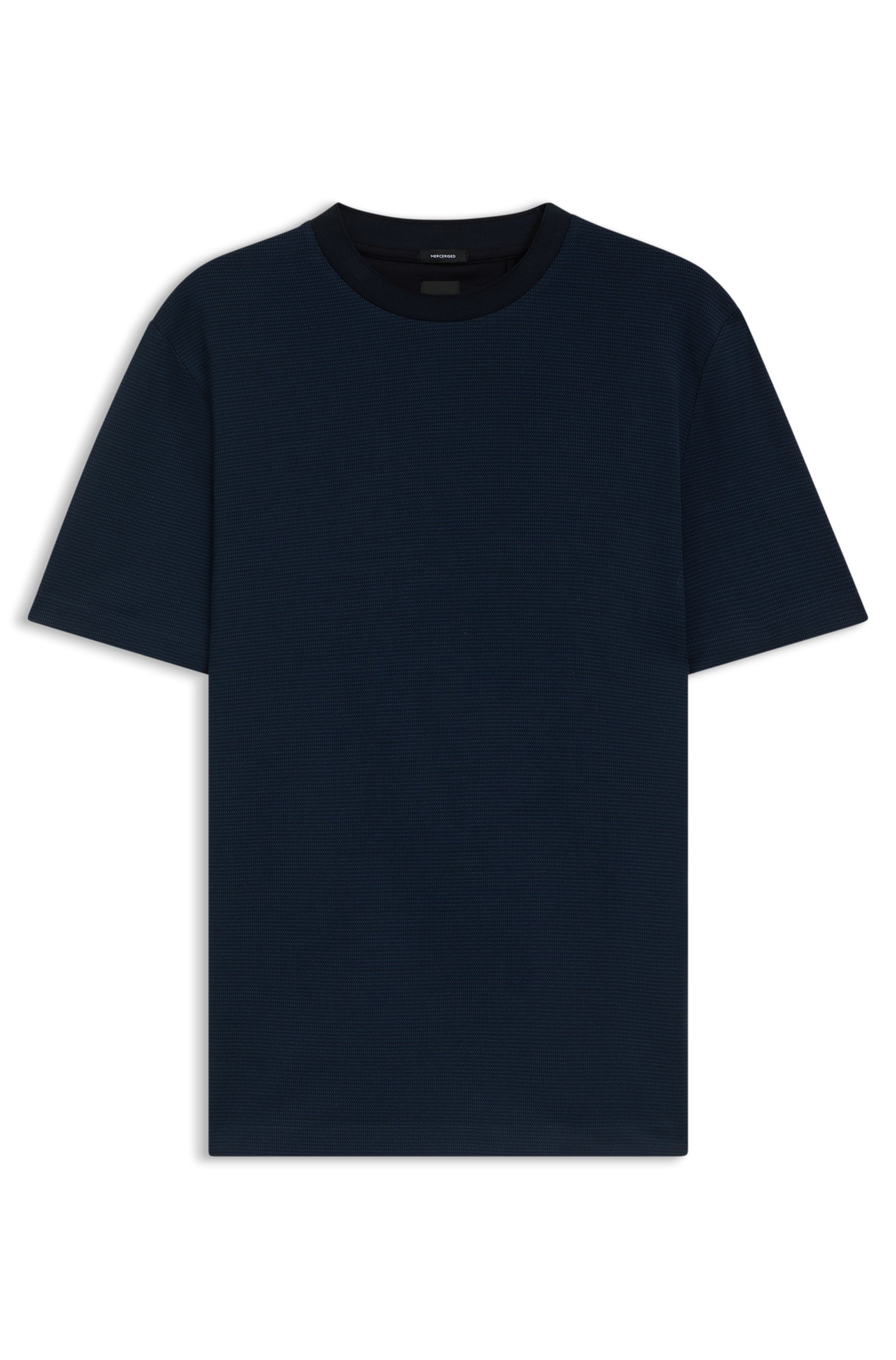 Crafted in mercerized cotton with increased softness, this BOSS Menswear T-shirt elevates your basics. Straight fit. Three-tone micro pattern with solid collar. Regular fit Neckline: Crew neck ... Sjá nánar