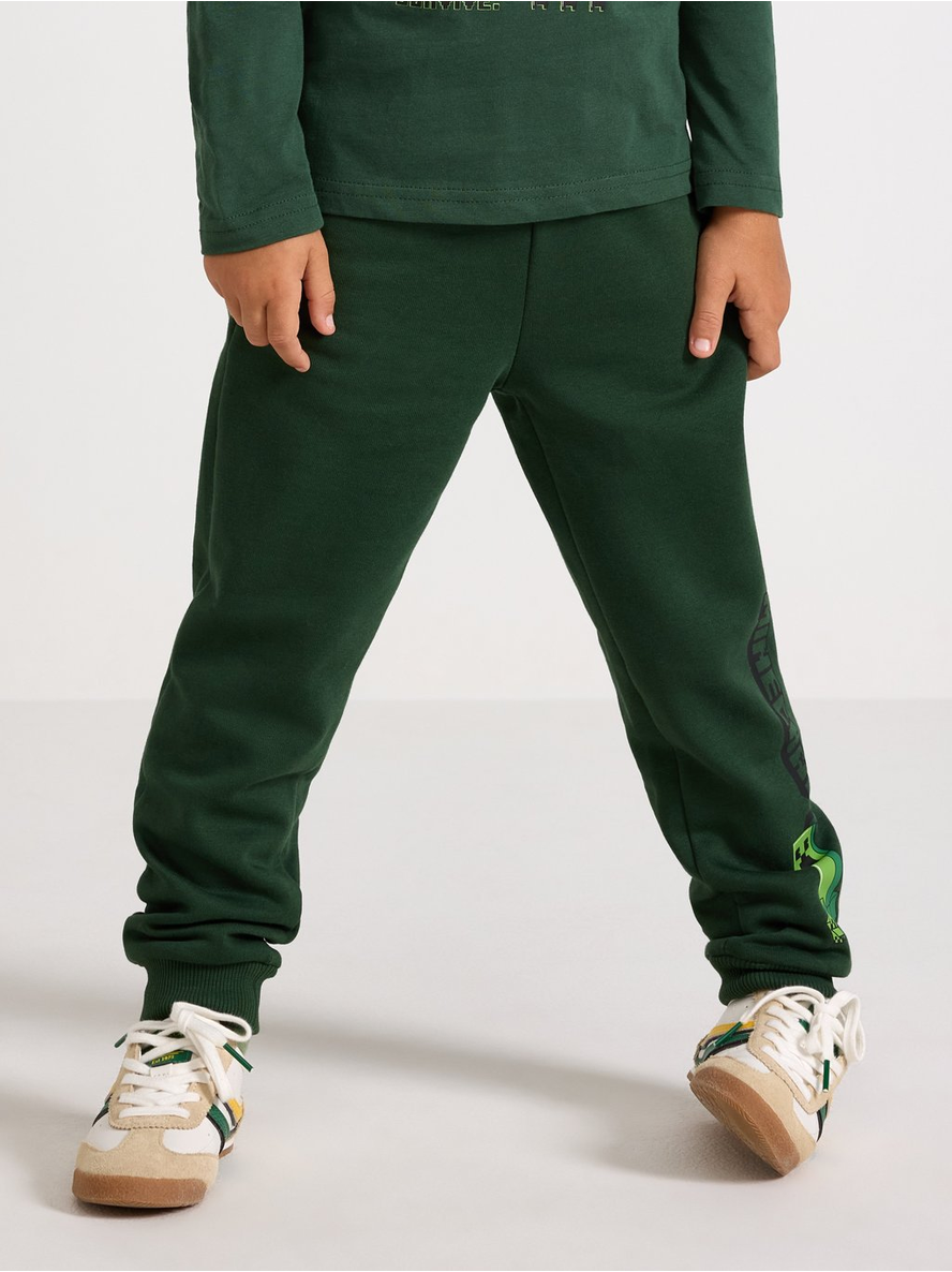Comfortable joggers in soft cotton blend with brushed inside. Adjustable waist Contains 50% organic cotton Contains 28% recycled cotton 78% bómull 22% pólýester