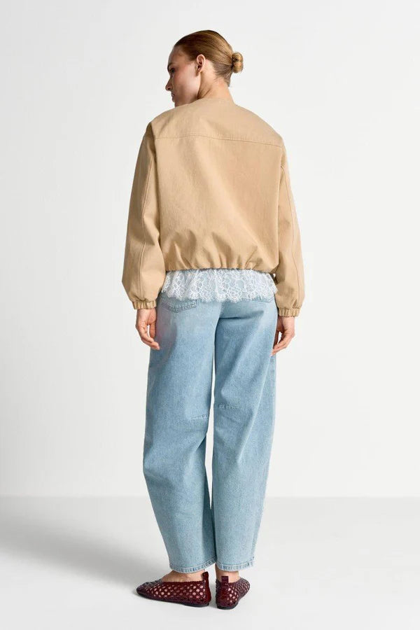 Stuttur bómullar jakki með rykkingu á stroffi.  100% Bómull