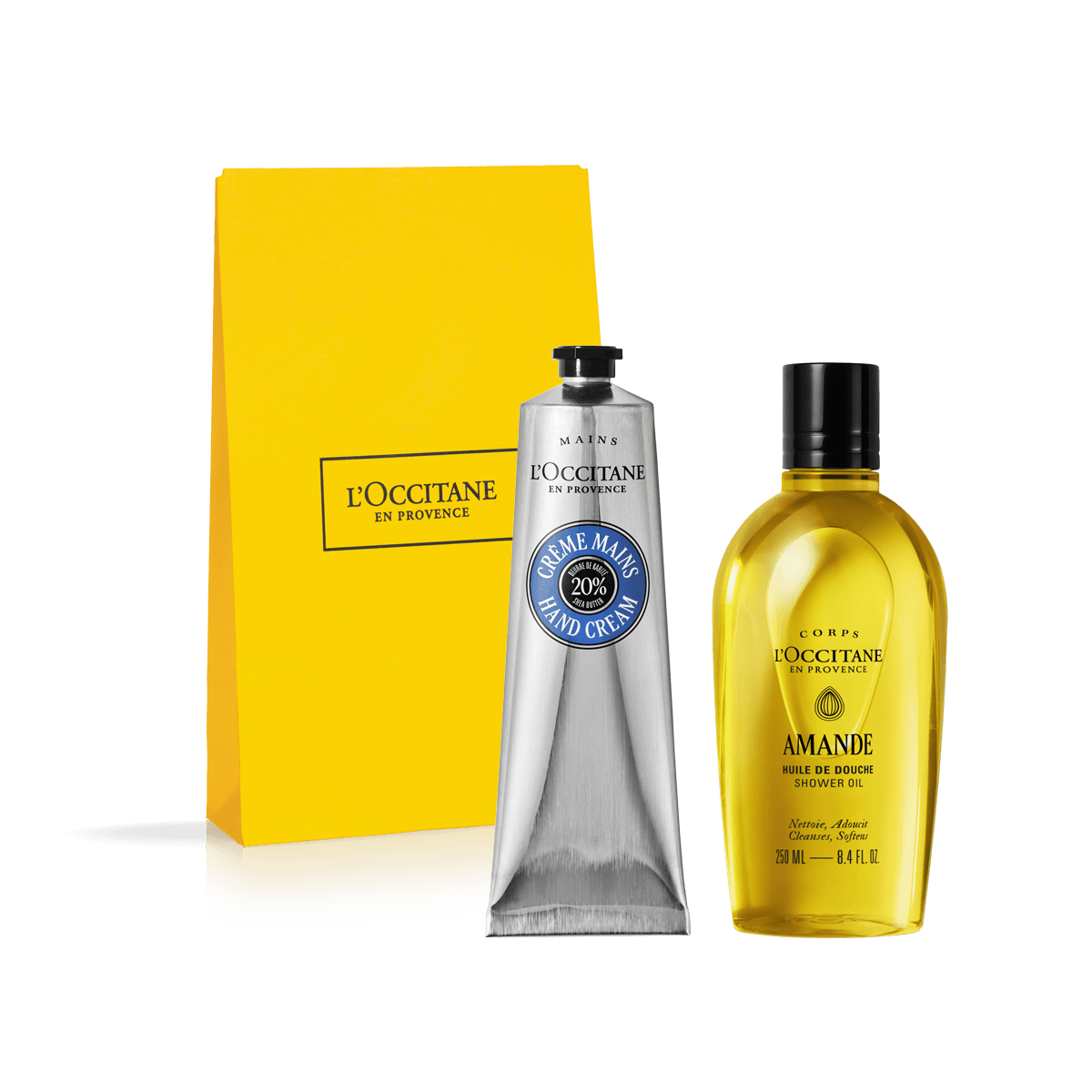 Fallegur gjafapoki með tveimur af vinsælustu vörum L’Occitane: Almond Shower Oil og Shea Hand Cream. Sturtuolían hreinsar húðina á mildan hátt og breytist í mjúka mjólkurkennda froðu sem ... Sjá nánar