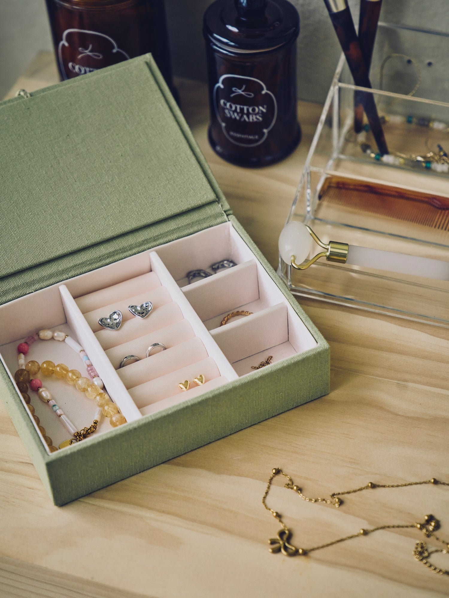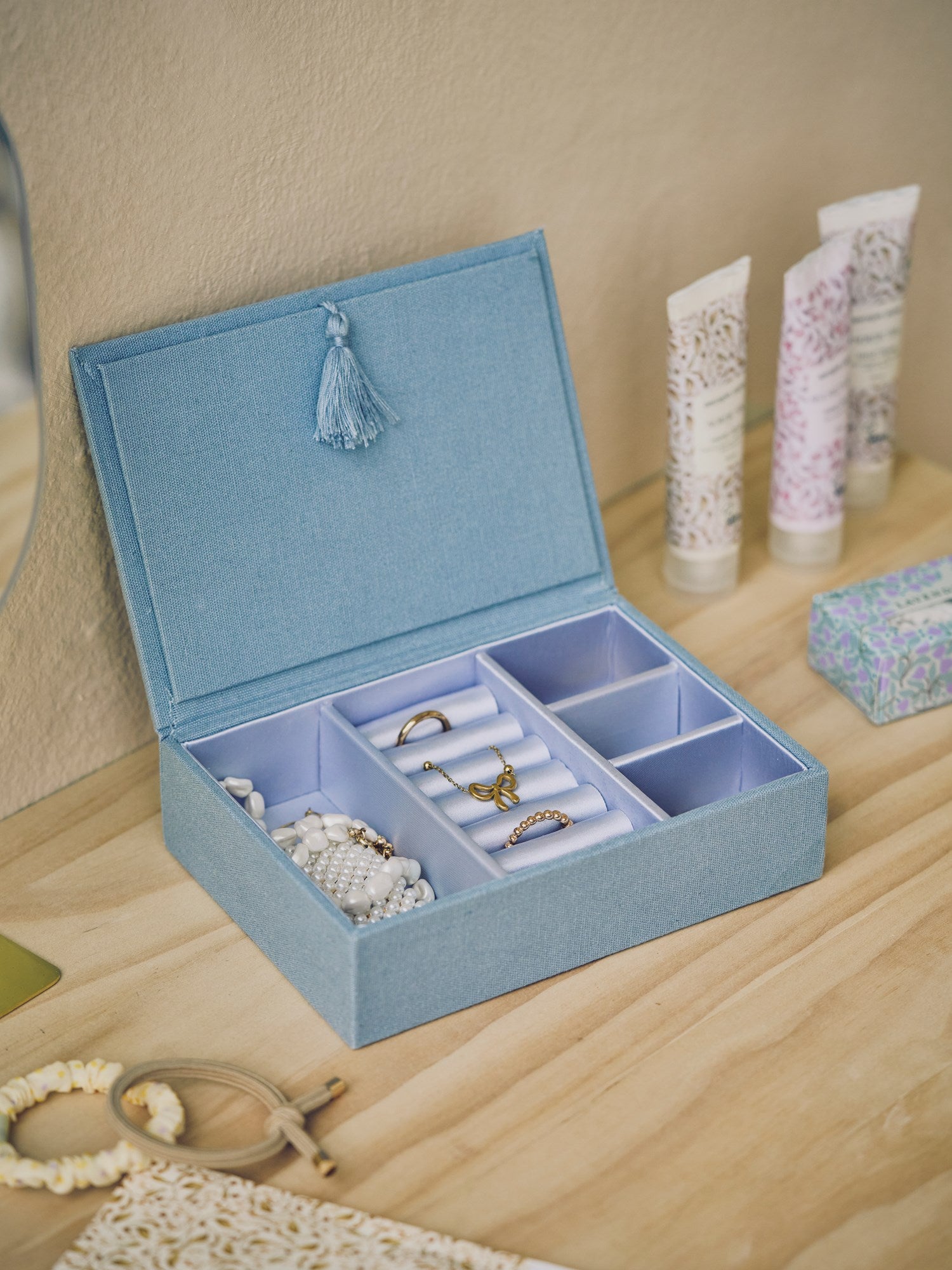 Elegant storage "A delightful treasure chest for your trinkets," Clara notes with a smile. "Indeed, a charming way to organise one's jewellery," Anna agrees, admiring its elegance and utility.