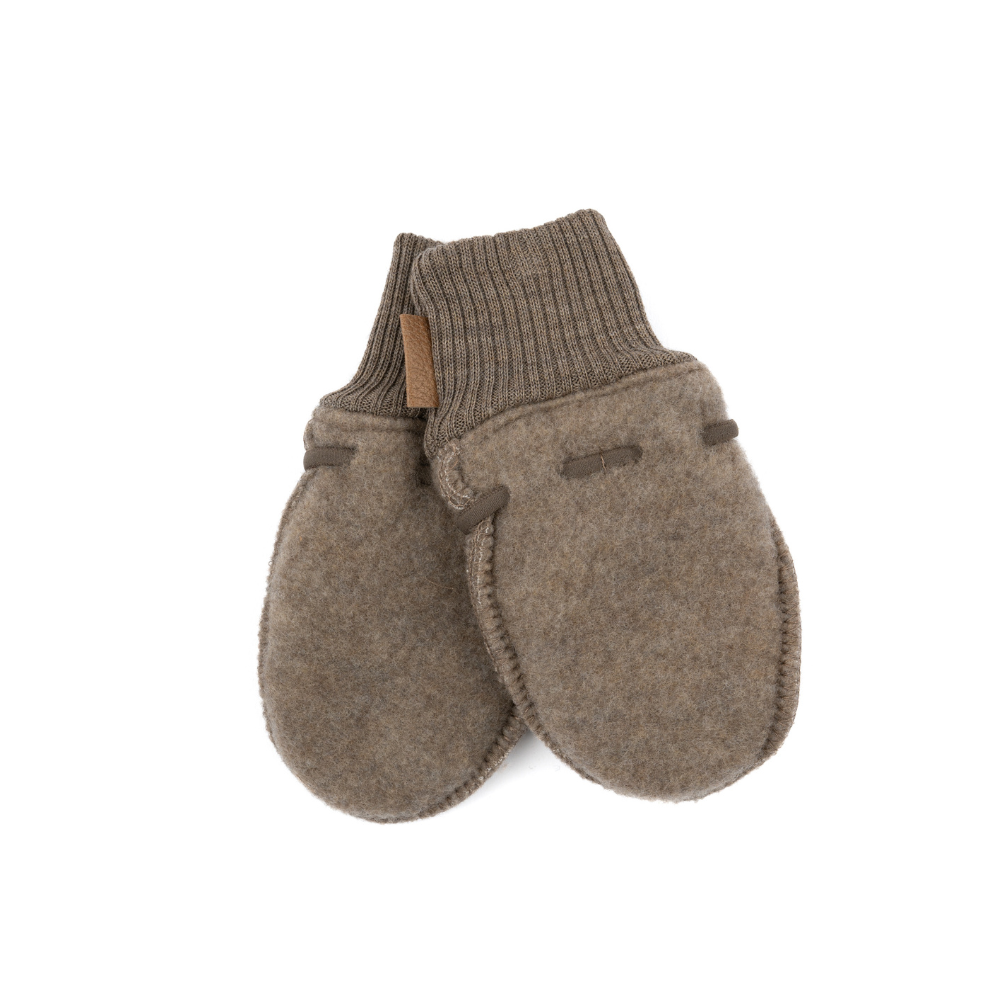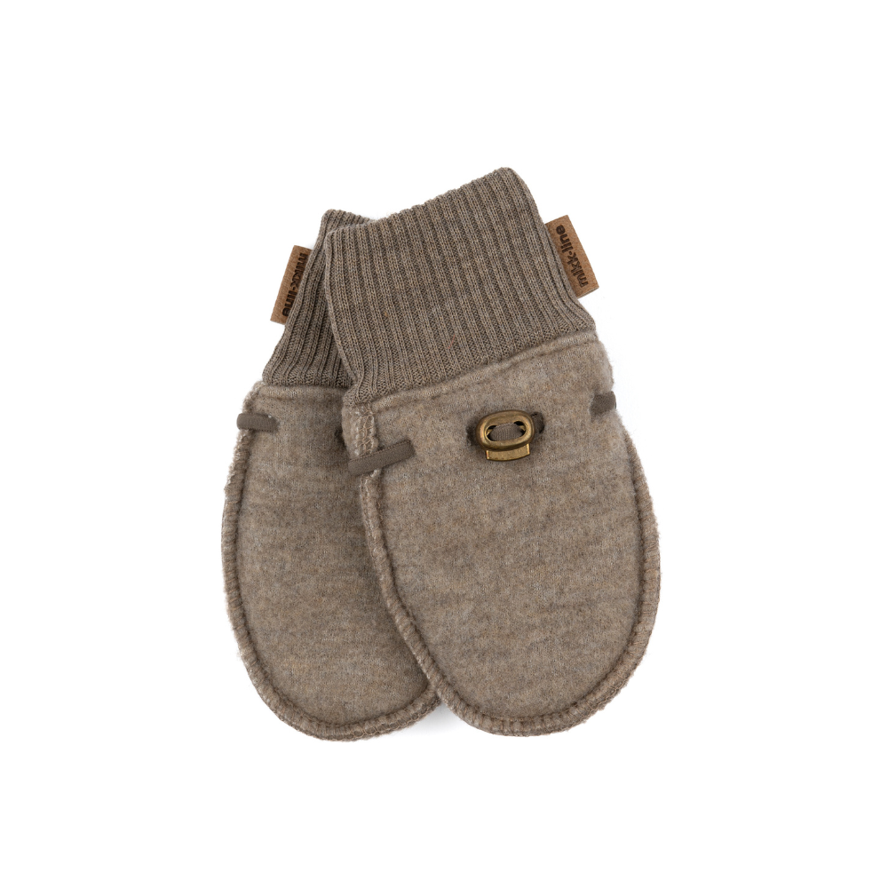 Brúnir vettlingar frá Mikk-Line. 95% ull og 5% polyester.