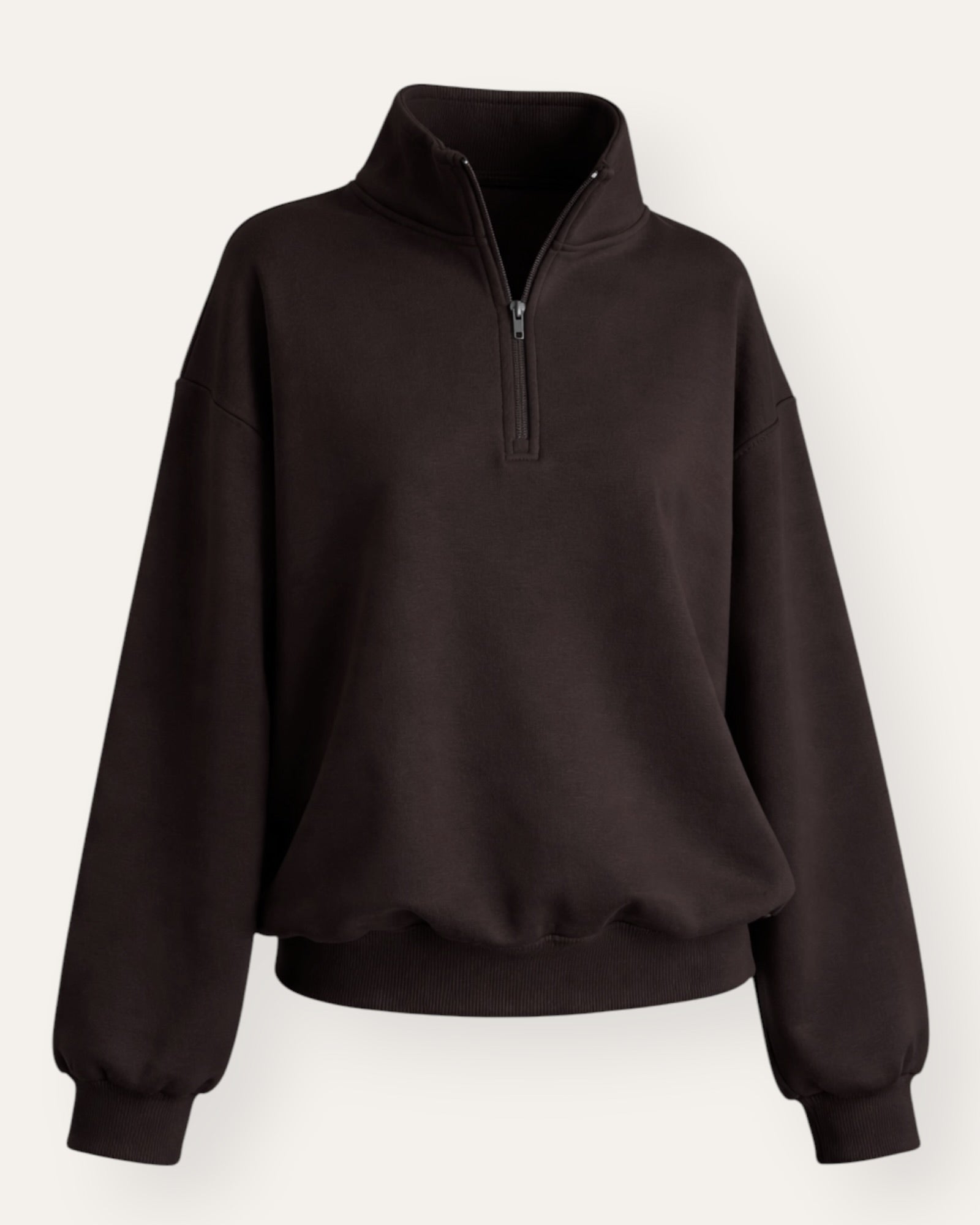 Oversized jogging peysa – zip kragi Þessi oversized jogging peysa er fullkomin blanda af þægindum og stíl. Hún er með slakri, oversized passformi sem gefur effortless og trendy look – ... Sjá nánar